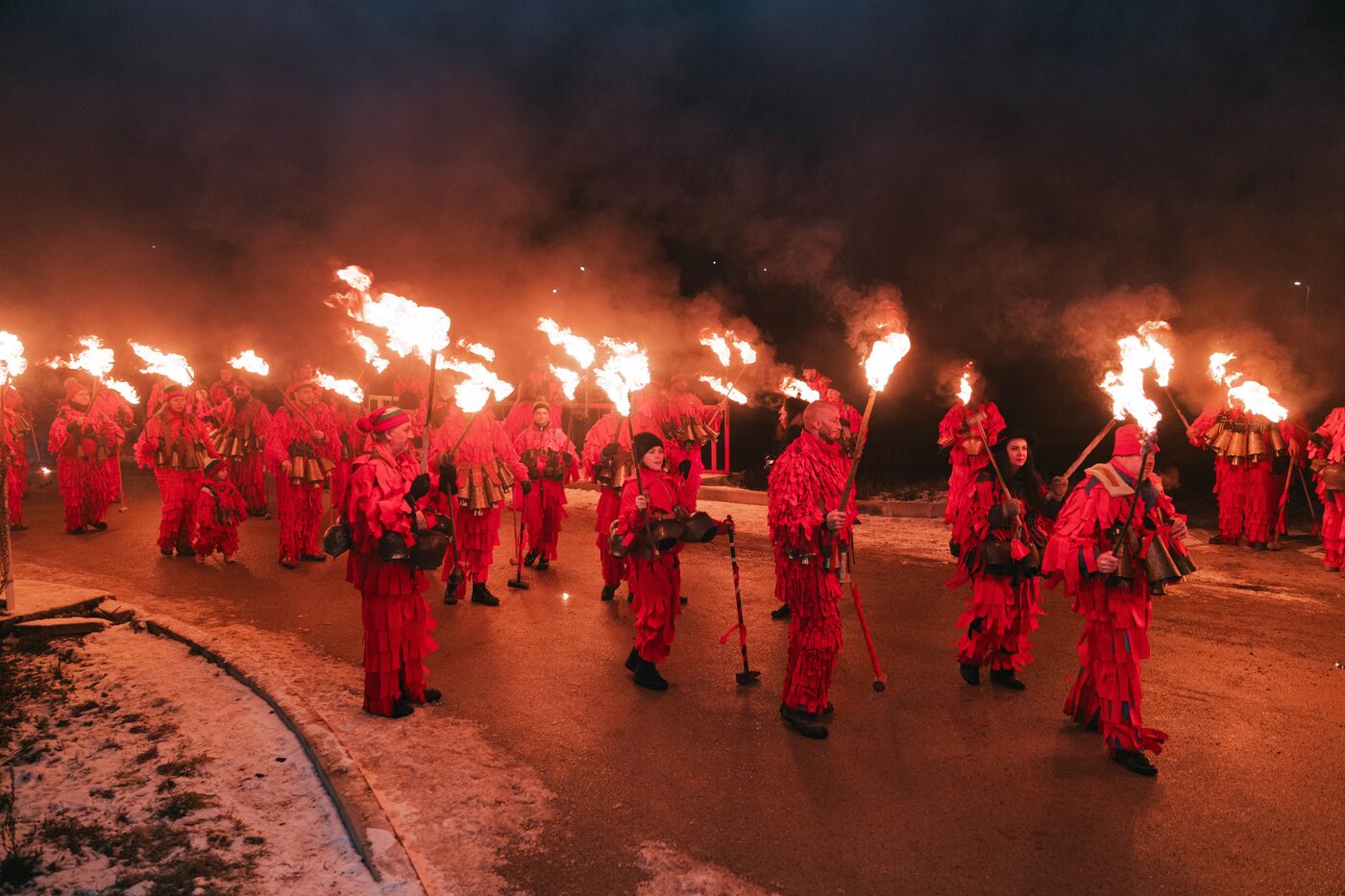 The Kukeri ritual in Kosharevo, a village in western Bulgaria, is part of a widespread winter masquerade tradition practiced in many villages across the Pernik region. Taking place on January 13, local men, women, and children wear elaborate masks, animal skins, and heavy bells, performing ritual dances and processions through the village. The deafening sound of the bells and the symbolic movements are believed to cleanse the community, ward off evil spirits, and bring fertility, health, and abundance. Passed down through generations, the Kukeri tradition in Kosharevo represents one of many living expressions of the Pernik region’s rich folkloric heritage and intangible cultural traditions.