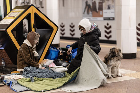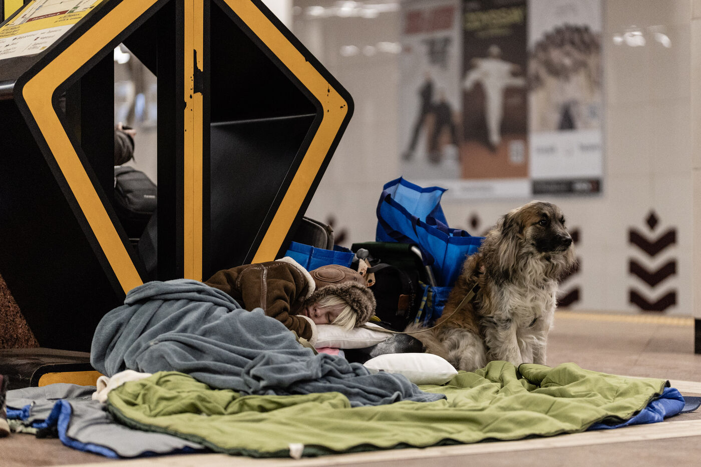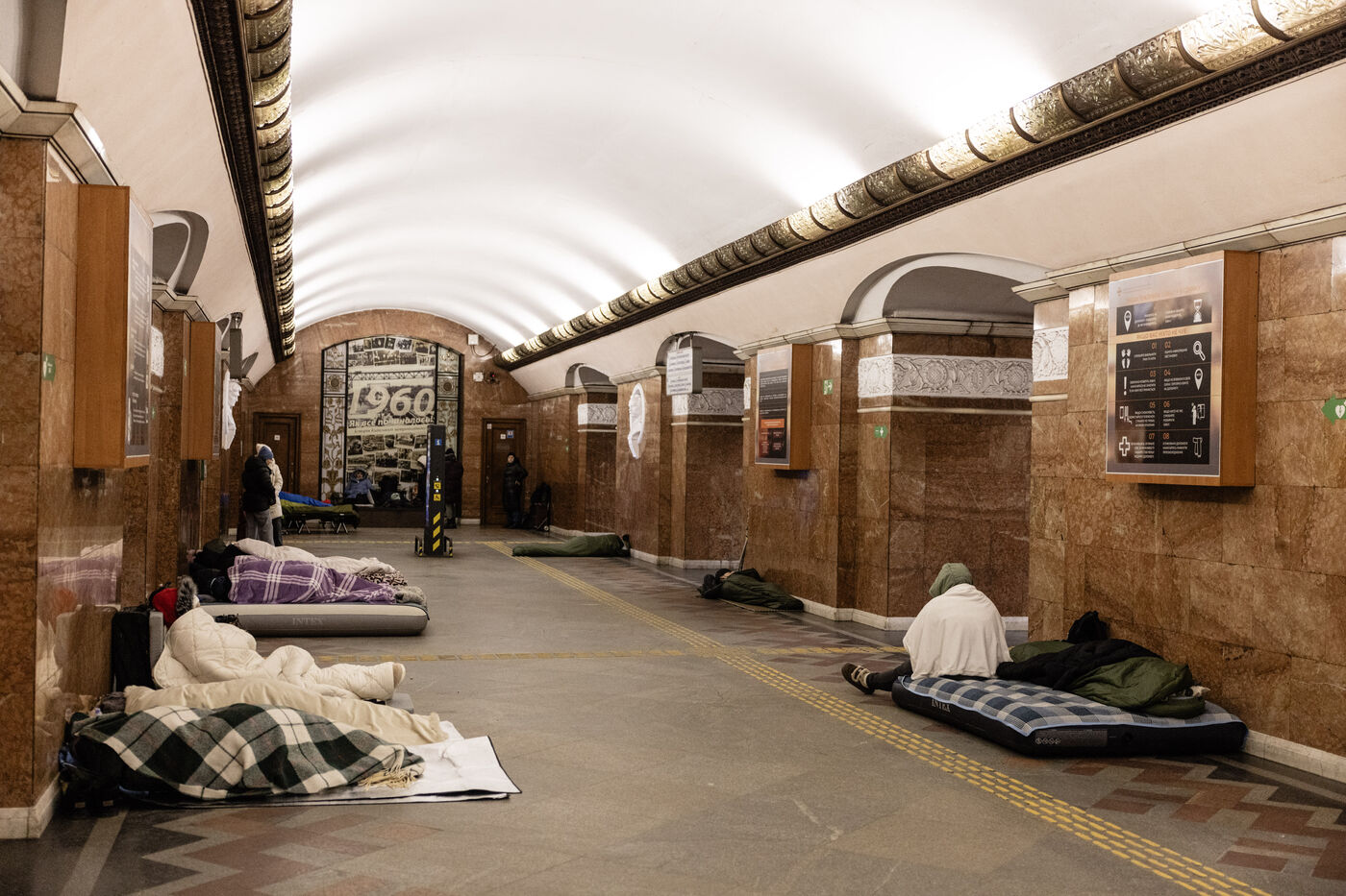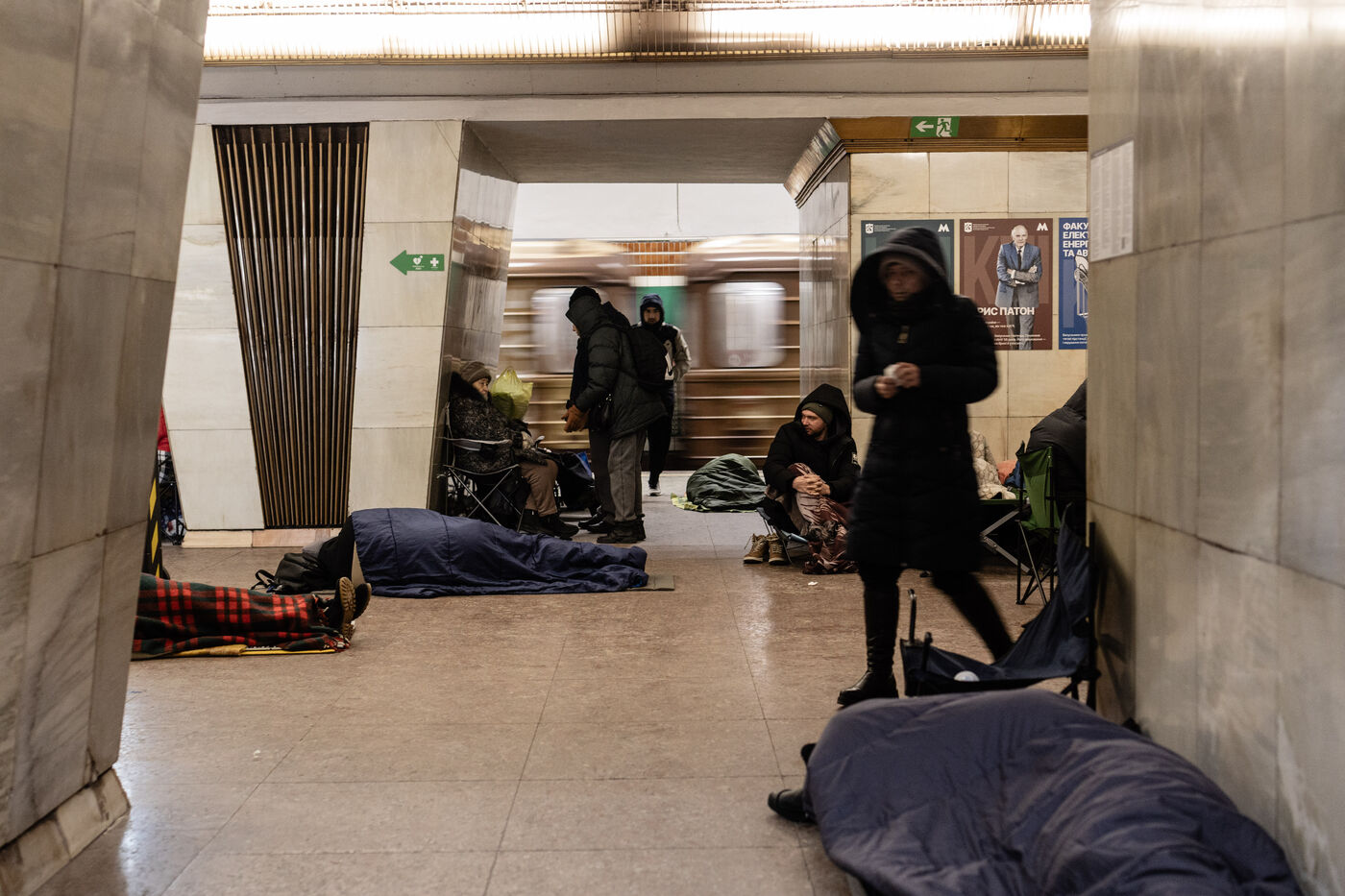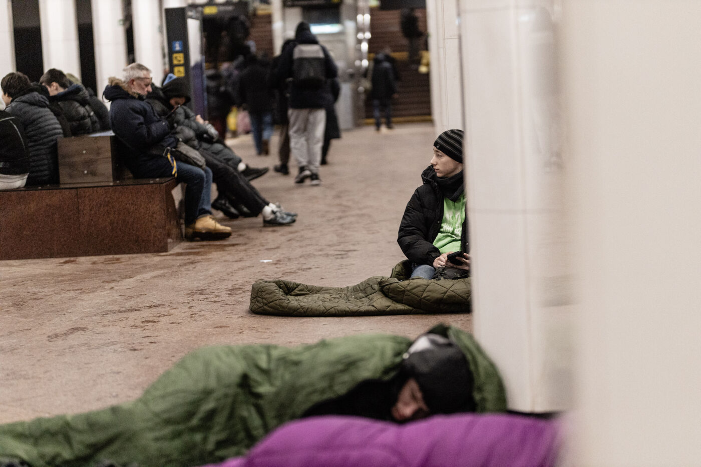 On February 7, 2026, during nighttime air attacks on Ukraine, civilians gathered in underground metro stations to seek protection. Carrying tents, sleeping bags, and inflatable mattresses, many prepared to spend the night in makeshift shelters. Families with children and elderly people joined others in the crowded platforms. The atmosphere reflected both fear and resilience as people tried to rest despite the uncertainty. The Kyiv metro has repeatedly served as a bomb shelter since the beginning of the war. These scenes illustrate the daily reality faced by residents living under constant threat.