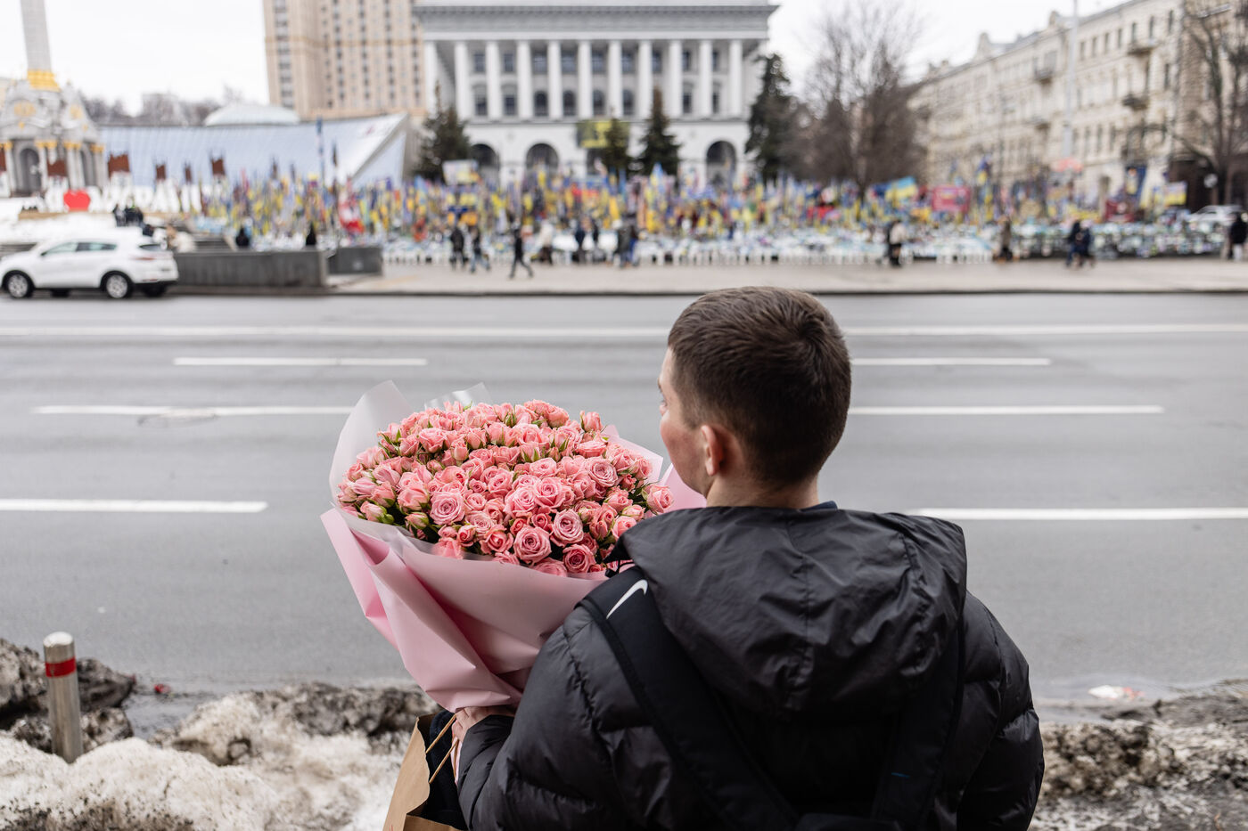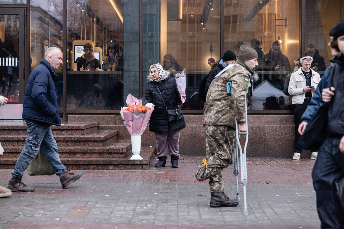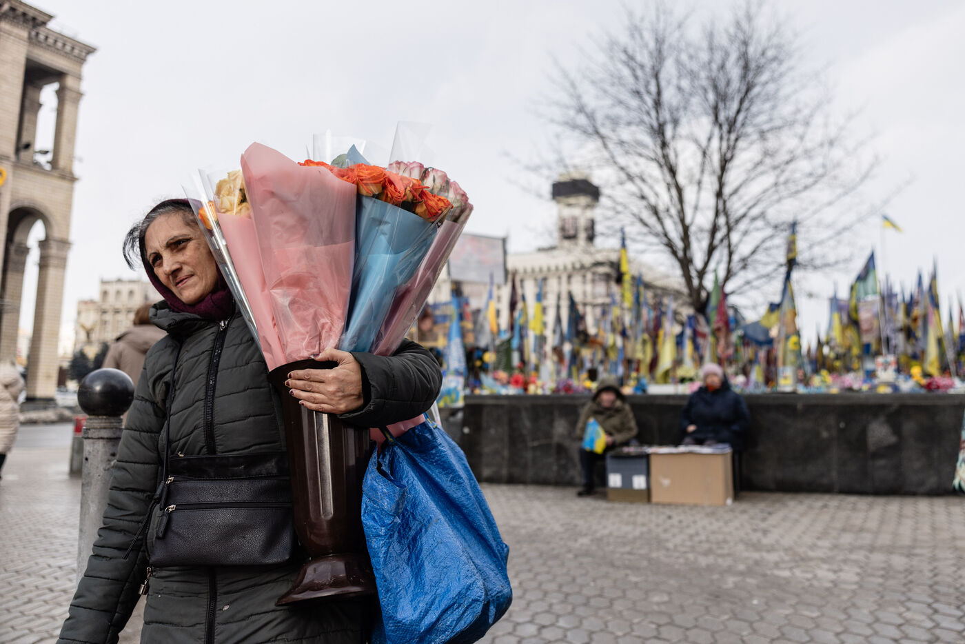 On February 14, 2026, residents of Kyiv continue their daily routines amid the ongoing war. People carry bouquets of flowers, wait at train stations, and move through the city streets. Memorials and public spaces, including Maidan, remain focal points for remembrance and quiet reflection. Outdoor exhibitions showcase the history and resilience of the Ukrainian army. Despite the conflict, moments of life, connection, and small celebrations like Valentine’s Day persist. The city stands as a testament to perseverance and hope amid challenging times.
