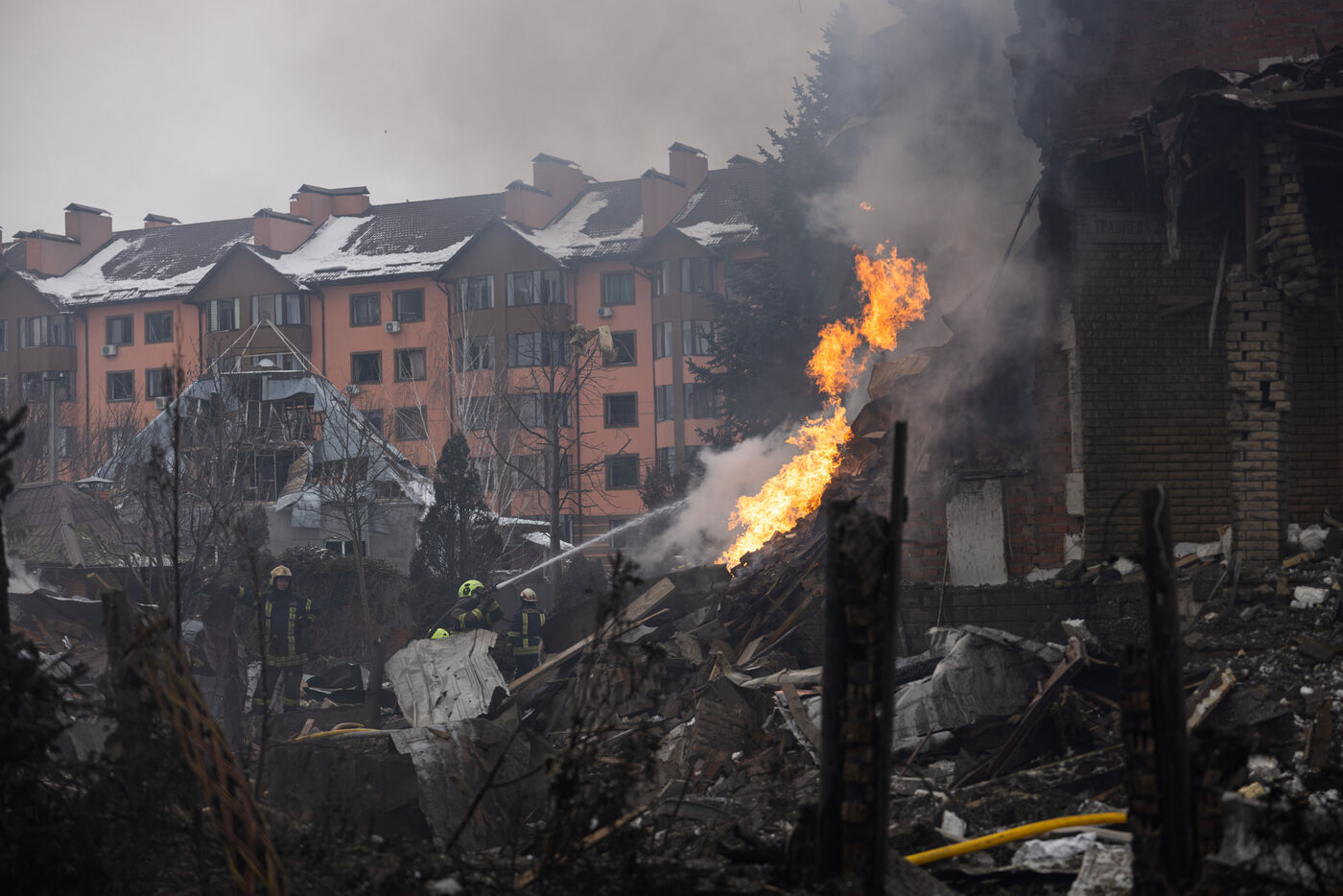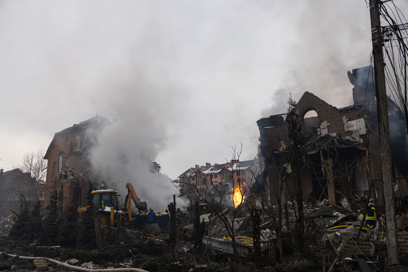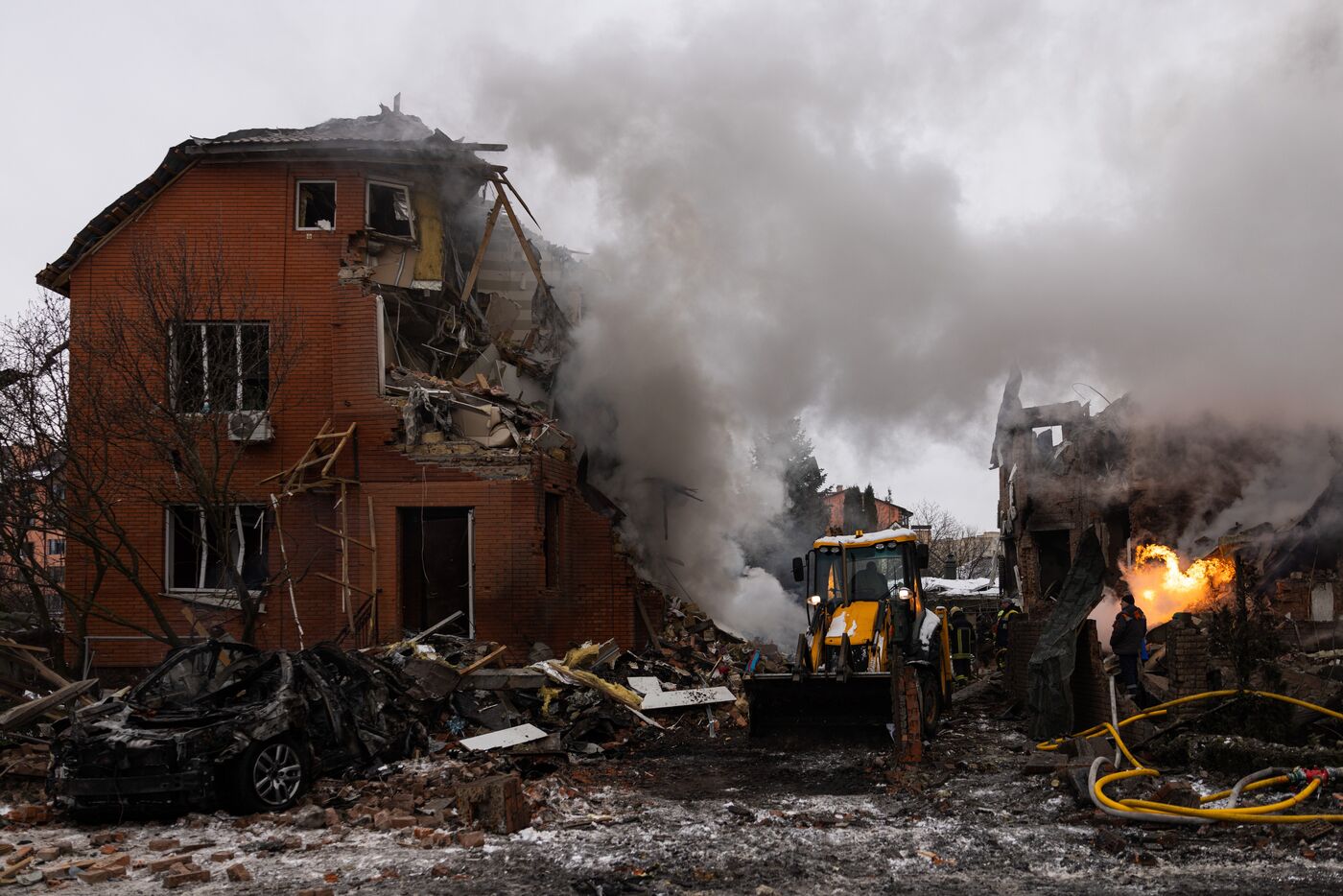 A Russian air strike struck the residential district of Sofiivska Borshchahivka in the Kyiv region on February 22, 2026. Several houses were destroyed while nearby buildings sustained structural damage. Parked vehicles were burned and debris was scattered across the area following the explosion. The strike caused a large fire that engulfed part of the neighborhood. Emergency services responded to contain the flames and assess the destruction. The attack is part of the ongoing war between Russia and Ukraine.