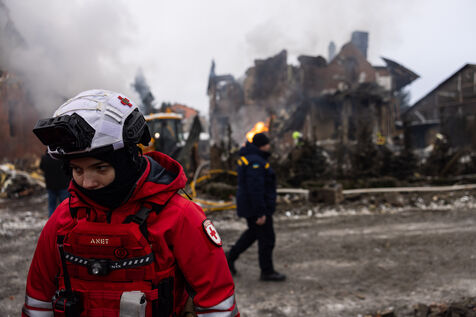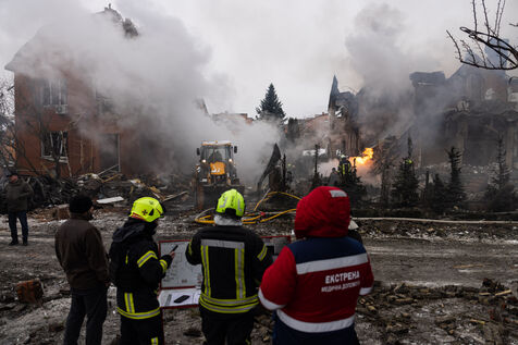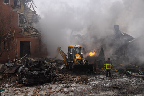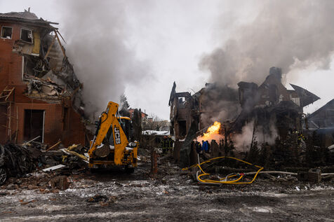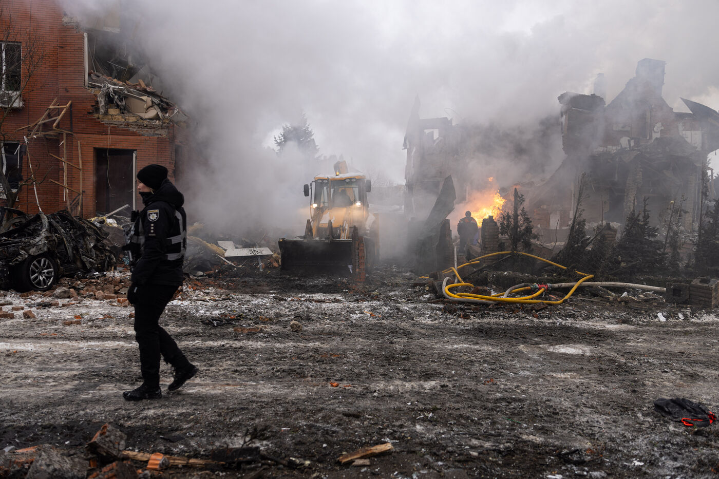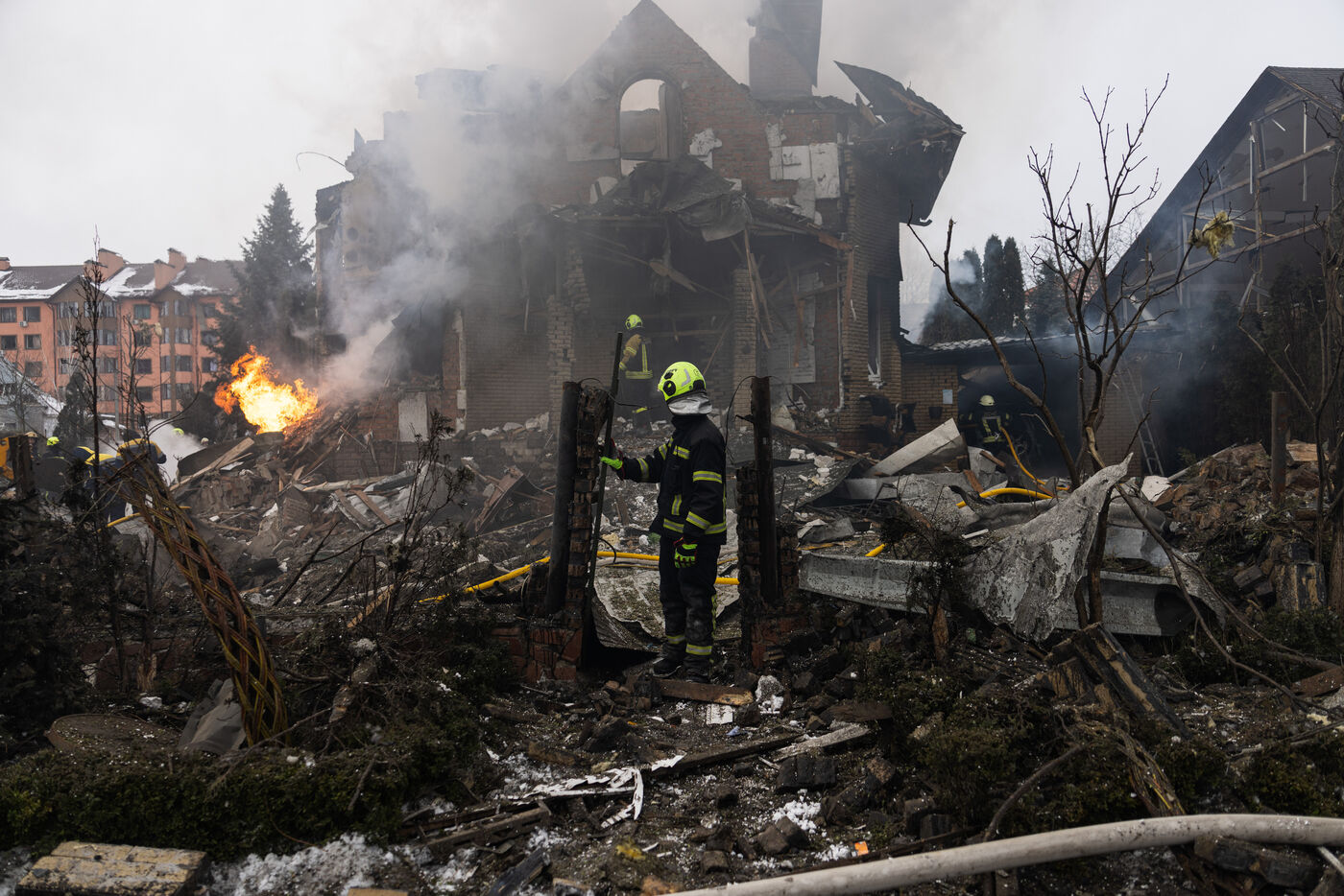 A Russian air strike struck the residential district of Sofiivska Borshchahivka in the Kyiv region on February 22, 2026. Several houses were destroyed while nearby buildings sustained structural damage. Parked vehicles were burned and debris was scattered across the area following the explosion. The strike caused a large fire that engulfed part of the neighborhood. Emergency services responded to contain the flames and assess the destruction. The attack is part of the ongoing war between Russia and Ukraine.