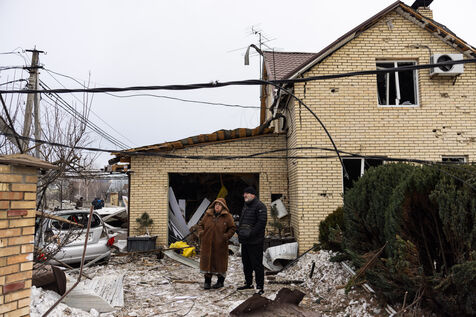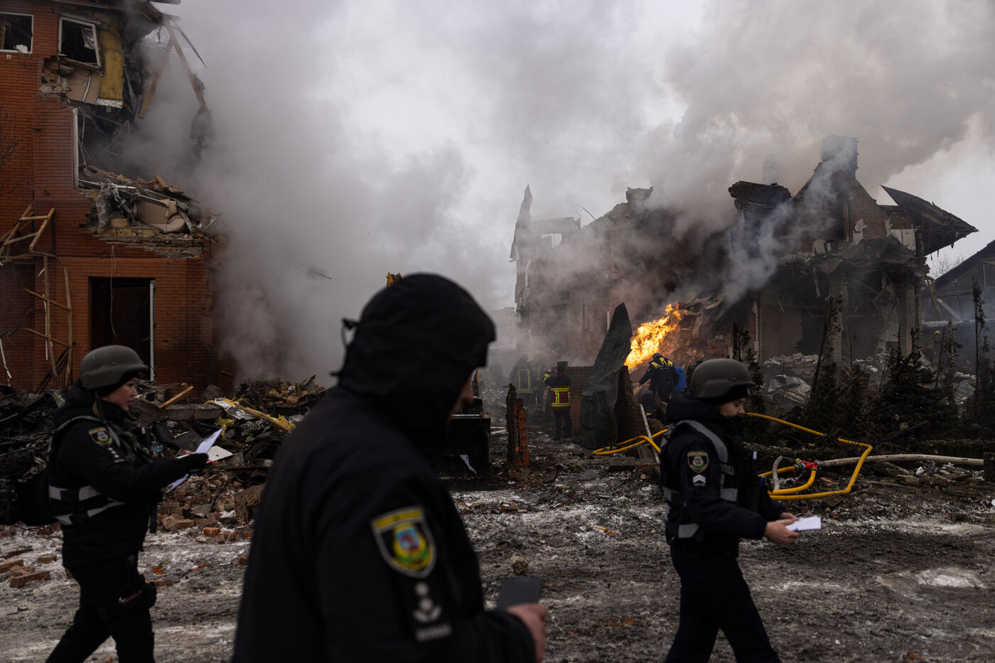 UKRAINE, KIEV – 22 FEVRIER 2026: FRAPPE AERIENNE RUSSE ENDOMMAGE UN QUARTIER RESIDENTIEL A SOFIIVSKA BORSHCHAHIVKA