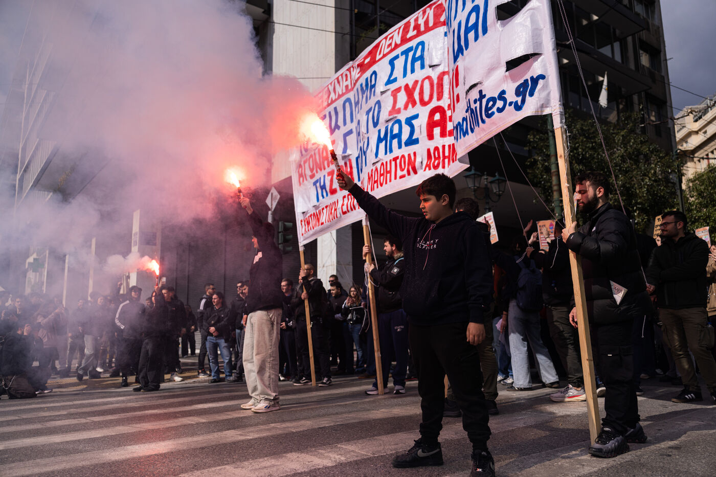 ATHENES, GRECE – 26 FEVRIER 2026: MANIFESTATION ETUDIANTE MARQUE LE TROISIEME ANNIVERSAIRE DE LA CATASTROPHE FERROVIAIRE DE TEMPI