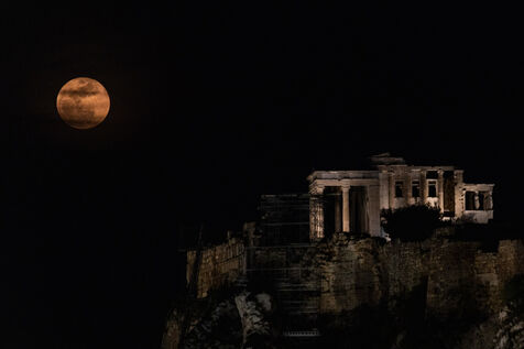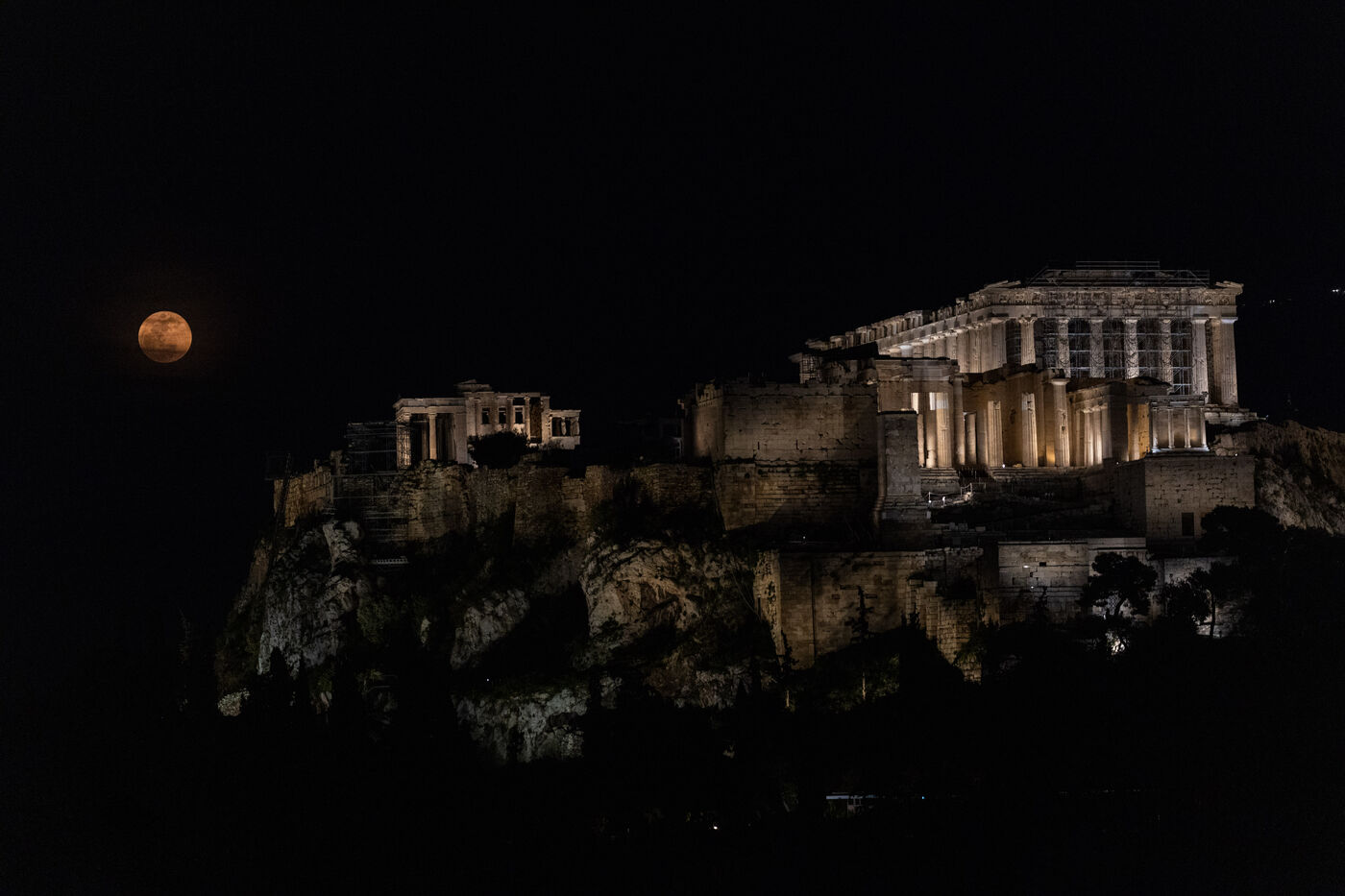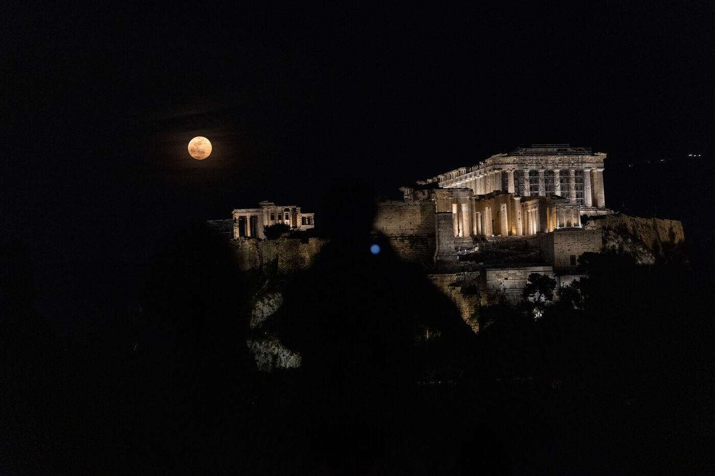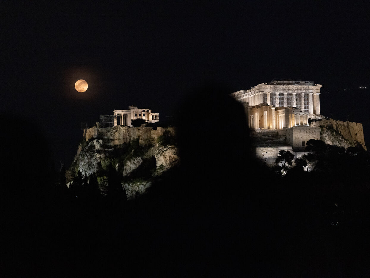 The full moon rises behind the illuminated Parthenon atop the Acropolis in Athens, Greece, casting a bright glow over the historic landmark. As dusk settles over the Greek capital, the lunar disk appears above the ancient citadel, contrasting with the darkening sky. The March full moon, traditionally known as the Worm Moon, marks the transition from winter to spring in the Northern Hemisphere. Its peak illumination draws attention from photographers and visitors gathered around the city’s historic center. The phenomenon creates a dramatic alignment between the natural celestial event and one of the world’s most iconic archaeological sites.