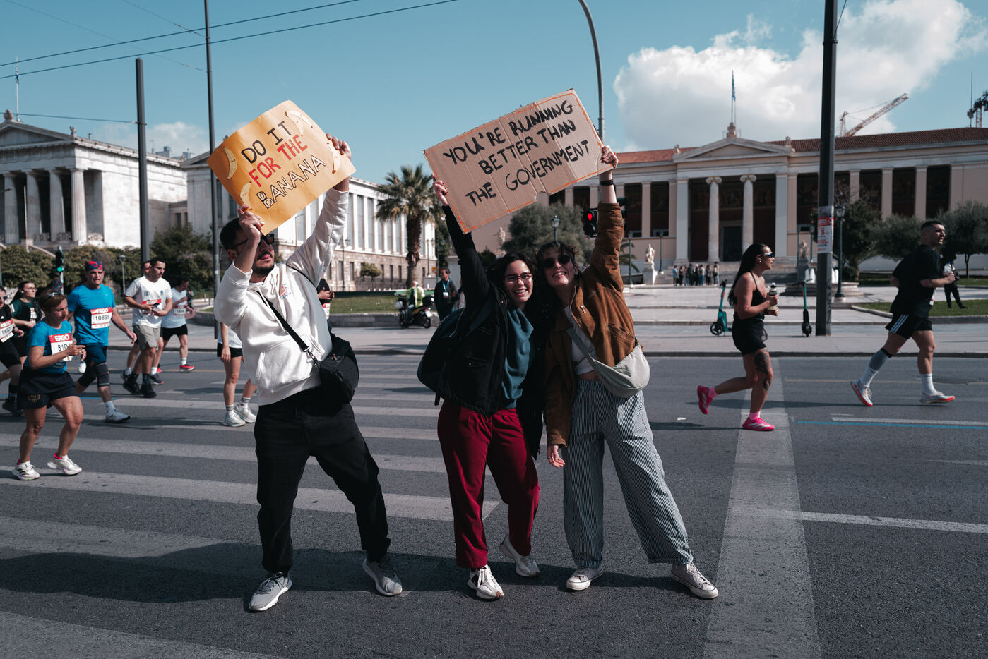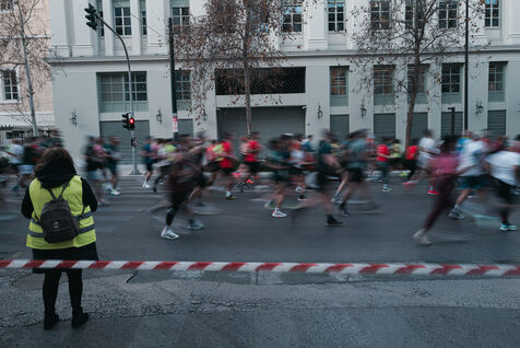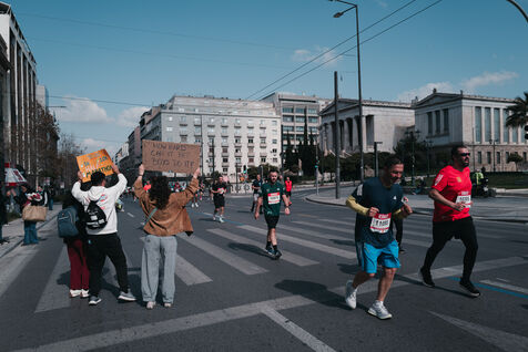 Thousands of runners participate in the Athens Half Marathon held in the Greek capital. The race starts and finishes near Syntagma Square and runs through major streets in central Athens. Professional and amateur athletes compete in the 21.1 kilometer road race together with other running events organized the same day. The competition is one of the largest running events in Greece. Spectators gather along the route to support the runners. The event attracts participants from Greece and other countries.