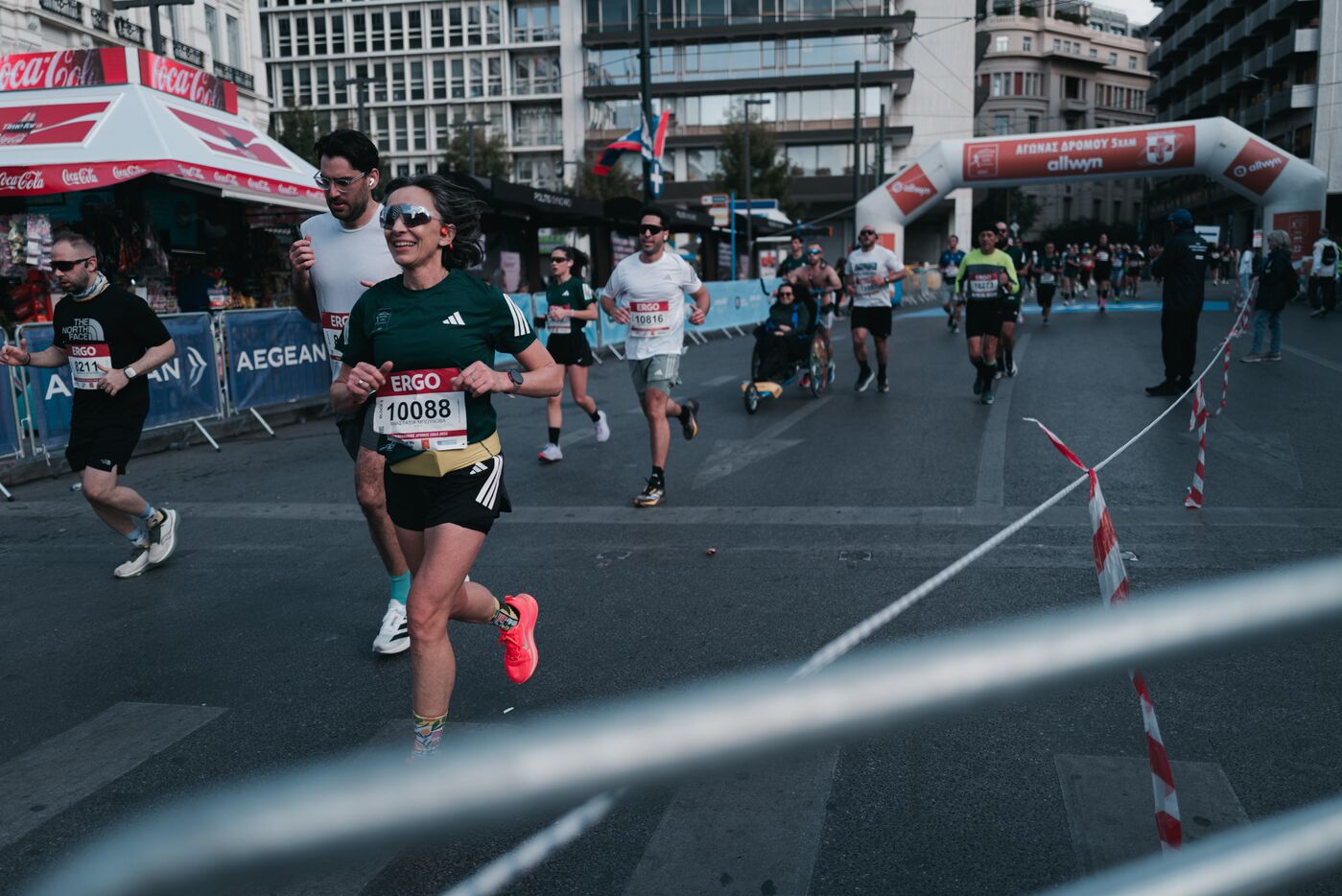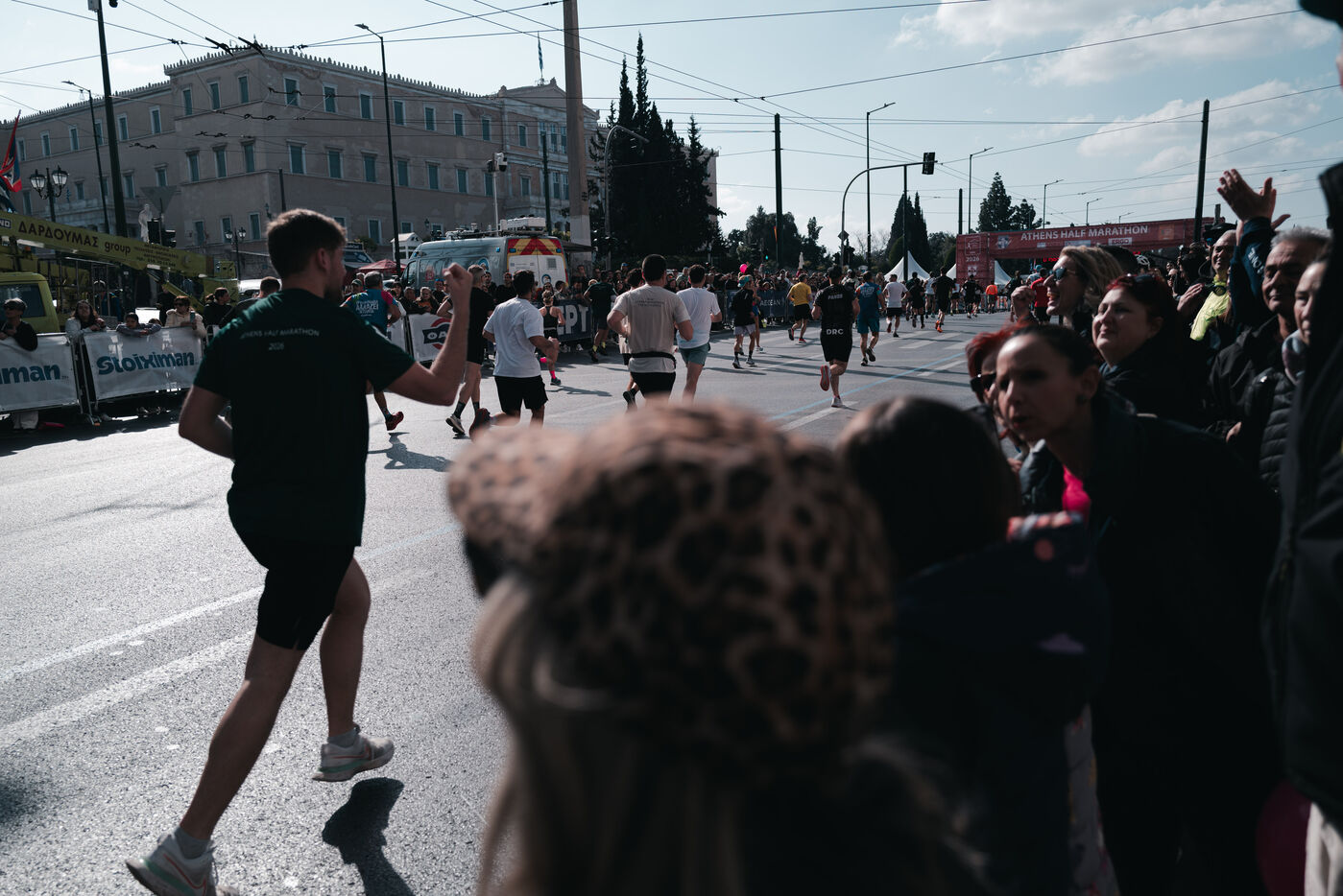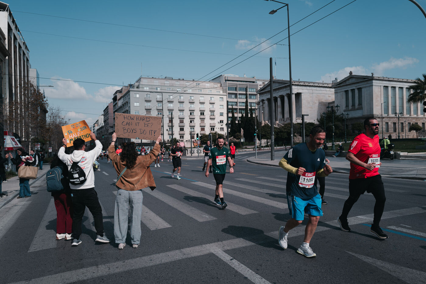 Des milliers de coureurs participent au semi marathon d Athenes organise dans la capitale grecque. La course commence et se termine pres de la place Syntagma et traverse les principales rues du centre d Athenes. Des athletes professionnels et amateurs participent a la course sur route de 21.1 kilometres ainsi qu a d autres epreuves organisees le meme jour. La competition est l un des plus grands evenements de course a pied en Grece. Des spectateurs se rassemblent le long du parcours pour soutenir les coureurs. L evenement attire des participants de Grece et d autres pays.
