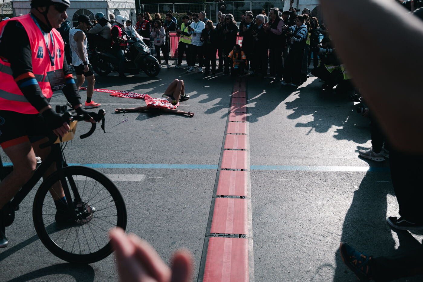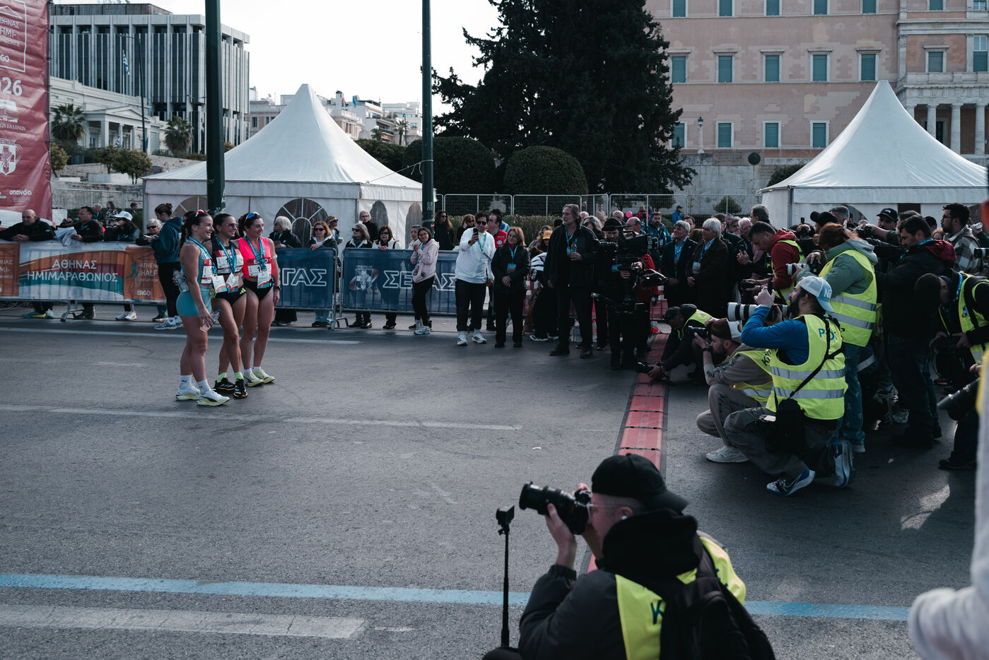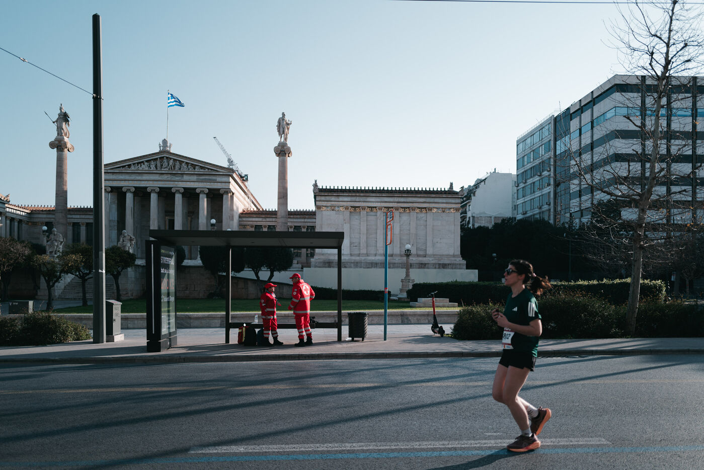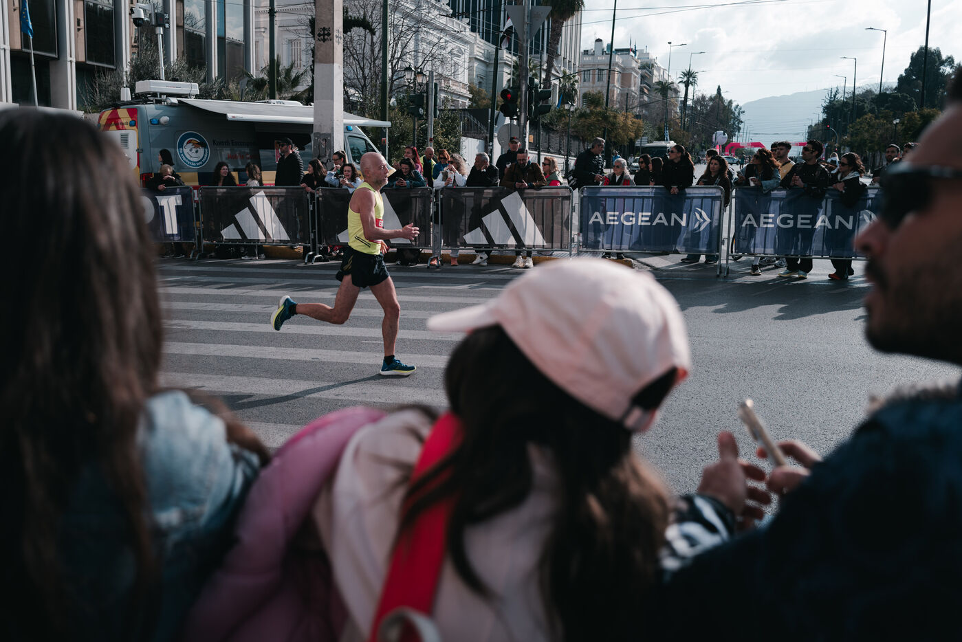 Des milliers de coureurs participent au semi marathon d Athenes organise dans la capitale grecque. La course commence et se termine pres de la place Syntagma et traverse les principales rues du centre d Athenes. Des athletes professionnels et amateurs participent a la course sur route de 21.1 kilometres ainsi qu a d autres epreuves organisees le meme jour. La competition est l un des plus grands evenements de course a pied en Grece. Des spectateurs se rassemblent le long du parcours pour soutenir les coureurs. L evenement attire des participants de Grece et d autres pays.