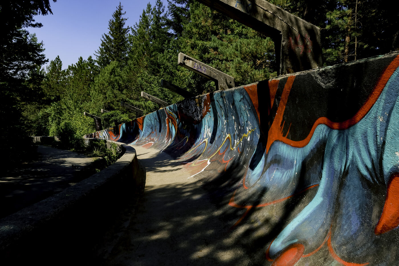 Located on Mount Trebević, the bobsleigh and luge track built for the Sarajevo 1984 Winter Olympics is now a striking reminder of the city’s history. Designed to host international competitions, it was severely damaged during the 1990s conflict and gradually abandoned. Its concrete structures, now covered in graffiti, wind through dense vegetation, bearing witness to both its sporting past and the region's historical upheavals. Now a popular site for visitors, it embodies the legacy of the Games and the transformations Sarajevo has gone through over the decades.