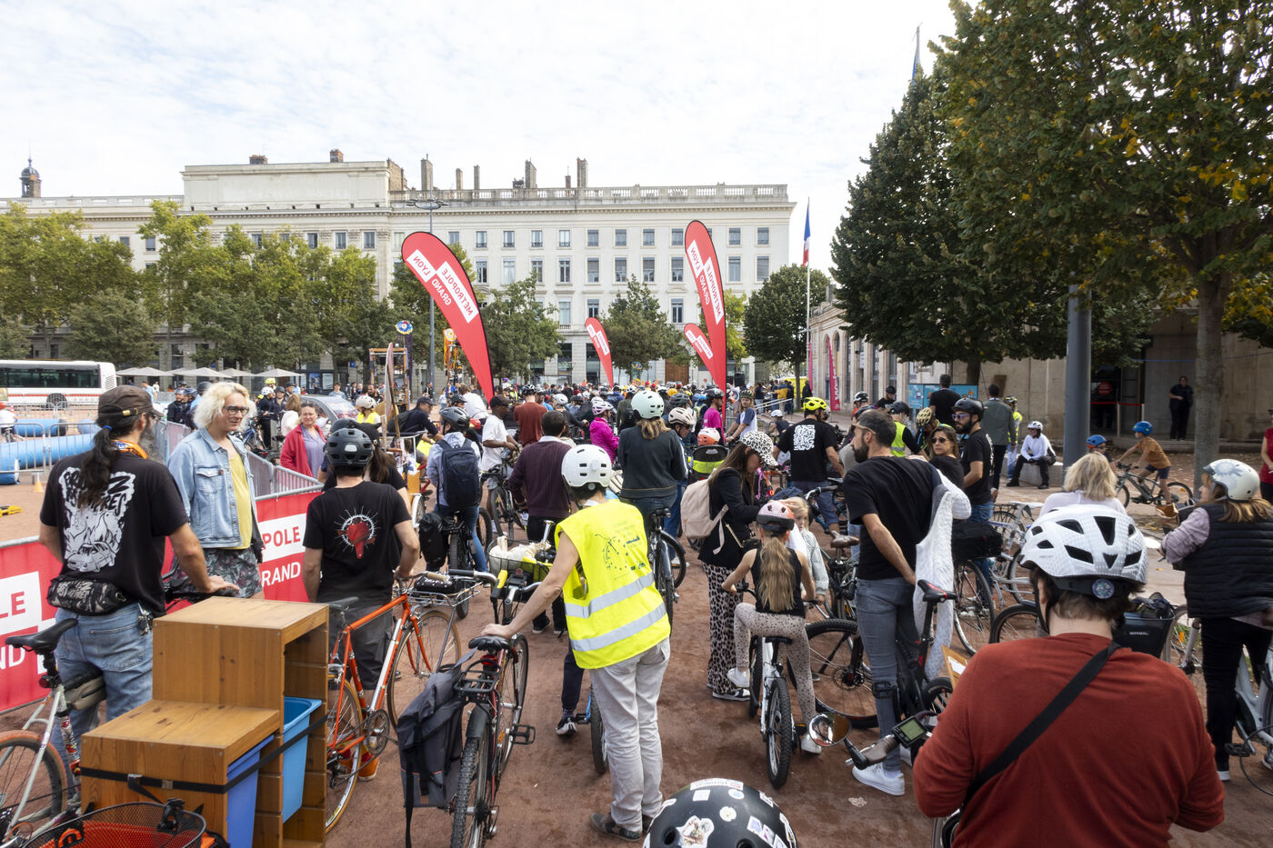 Les samedi 27 et dimanche 28 septembre 2025, la place Bellecour a Lyon a accueilli le Festival du velo, un grand week-end festif dedie a la pratique du velo en ville et aux mobilites douces, place sous la thematique : le velo sous toutes ses formes.