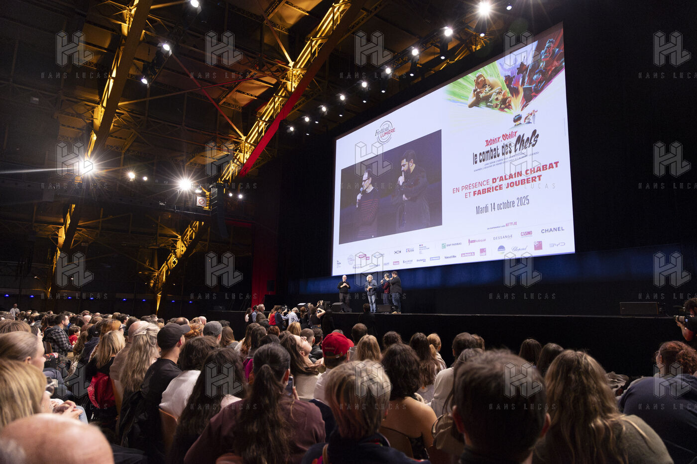 Programmed as part of the Lumière Festival, the animated film Asterix and Obelix - The Battle of the Chiefs - was presented by Alain Chabat and the film crew to the audience present that evening to discover or rediscover it in the main hall of the Halle Tony Garnier, on October 14, 2025.