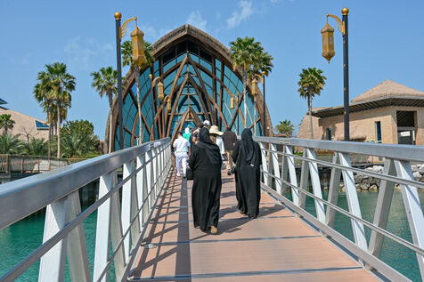 Anantara's Banana Island Resort Doha, located on a crescent-shaped island, features a private marina surrounded by coral reefs