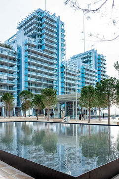 La serie documente cette transformation du littoral a travers une approche sobre et graphique : lignes architecturales epurees, promenades ouvertes sur la mer, facades contemporaines et vegetation replantee composent un paysage entierement dessine. L’humain y apparait discret, presque secondaire, dans un decor maitrise et organise.
