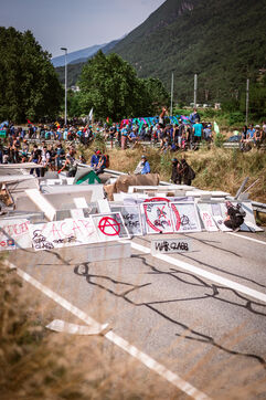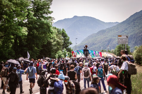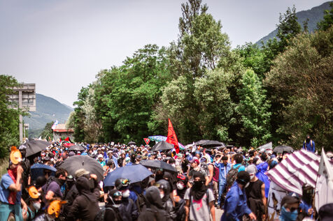 Nearly 5000 people gathered at La Chapelle in Savoie's Maurienne Valley for the international and popular mobilization against the new Lyon-Turin high-speed rail line on June 17, 2023. Despite prefectoral bans and police violence, including the use of GM2L warhead grenades. Some fifty people were seriously injured.