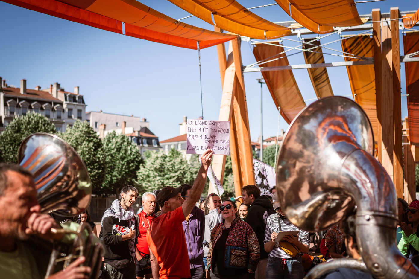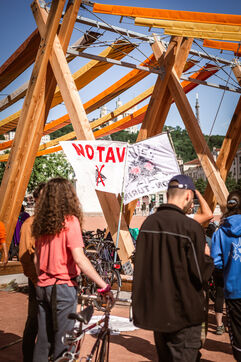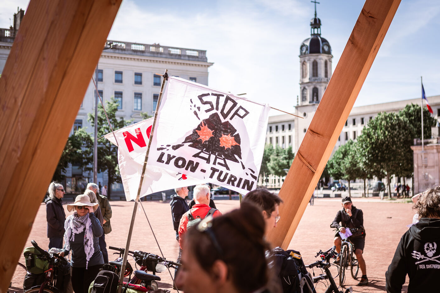 Le départ du convoi des Déraillantes contre la nouvelle ligne ferroviaire Lyon-Turin a eu lieu sur la Place Bellecour à Lyon en Fance le 24 mai 2025. Ce convoi de 9 jours à vélo est à l'initiative des Soulèvements de la Terre pour dire Stop au projet Lyon-Turin qui implique des bouleversements irréversibles des cycles hydrogéologiques.