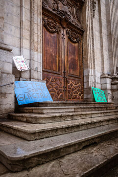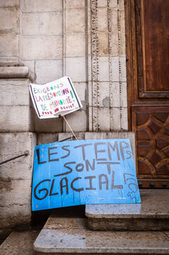 Depuis l'installation des premières tentes en janvier dernier au jardin des Chartreux, plus de 250 mineurs en recours devant le juge des enfants survivent toujours sur le campement dans des conditions catastrophiques. Les bénévoles du collectif soutiens migrants Croix-Rousse aident les jeunes à survivre sur le campement et relaient des appels aux dons face à l'inactions des institutions. En effet, le constat est honteux : en 10 mois d'alertes et de mobilisations aucune solution n'a été proposée ni par la métropole ni par la préfecture. Dans la deuxième ville la plus riche de France, nos institutions assument de laisser se dérouler une crise humanitaire où plus de 250 mineurs isolés sont à la rue. Face aux températures hivernales, les jeunes ont trouvé refuge dans l'église Saint Polycarpe, qui soutient leur mise à l'abri.