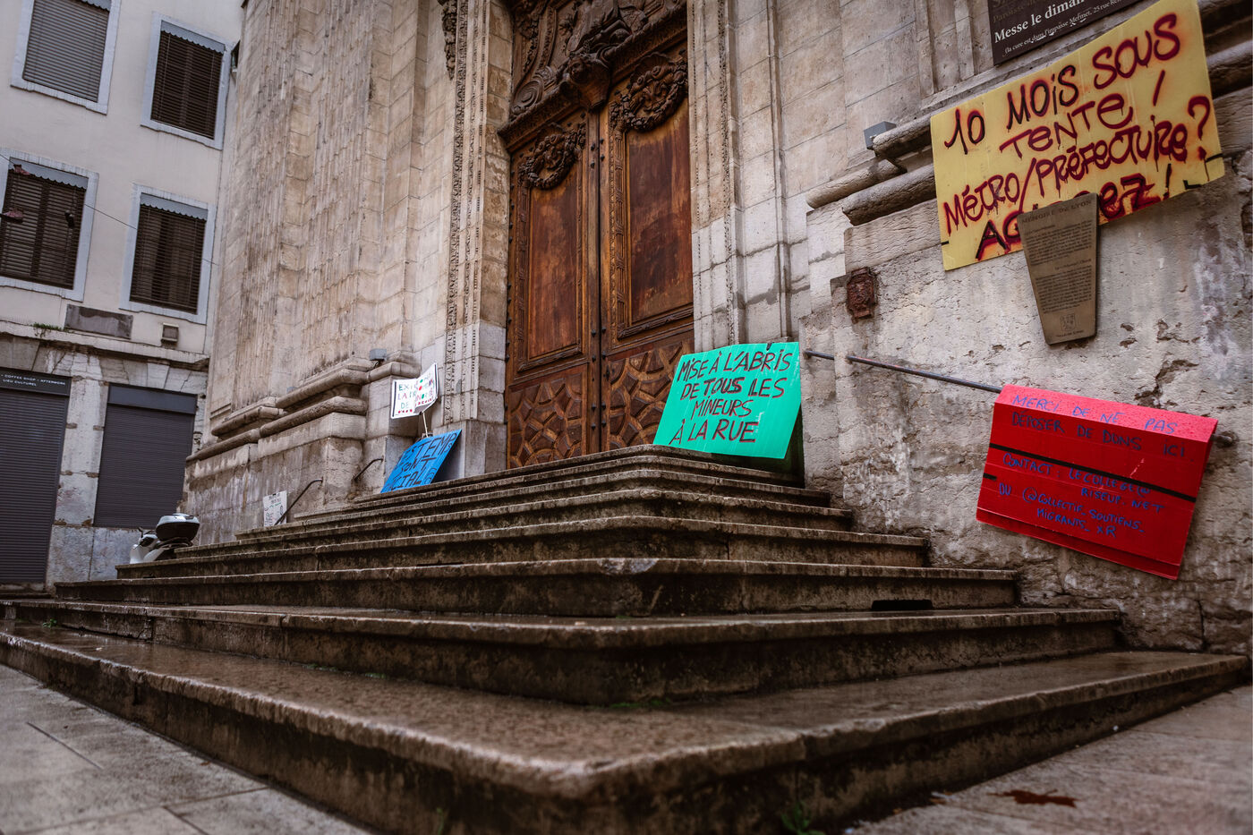 Since the installation of the first tents last January in the Chartreux garden, more than 250 minors who are appealing to the juvenile judge still survive in the camp under catastrophic conditions. The volunteers of the migrant support collective Croix-Rousse help young people to survive on the camp and relay appeals for donations in the face of inactions from institutions. Indeed, the observation is shameful: in 10 months of alerts and mobilizations no solution has been proposed by either the metropolis or the prefecture. In the second richest city in France, our institutions are assuming to let a humanitarian crisis take place where more than 250 isolated minors are on the street. Faced with winter temperatures, the young people found refuge in the Saint Polycarp church, which supports their sheltering.
