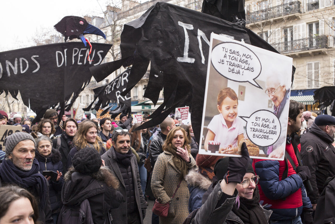 The pension reform project, wanted by Emmanuel Macron, was presented on 10 January by the Prime Minister Elisabeth Borne. On the call of the 8 main trade unions, a strong mobilisation took place between République and Nation.