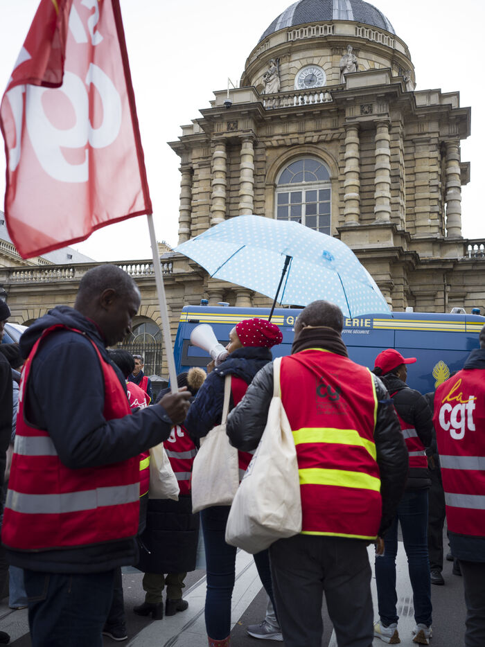 Demonstration in front of the Senate of the cleaners who fear for their health: the pension reform would lead them to work until 64 years.