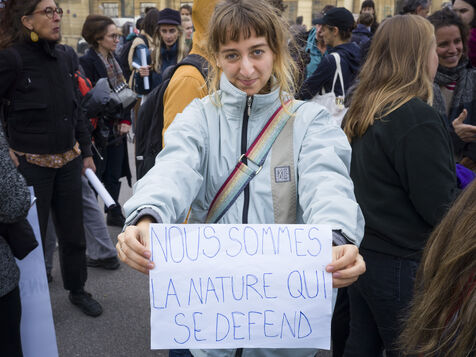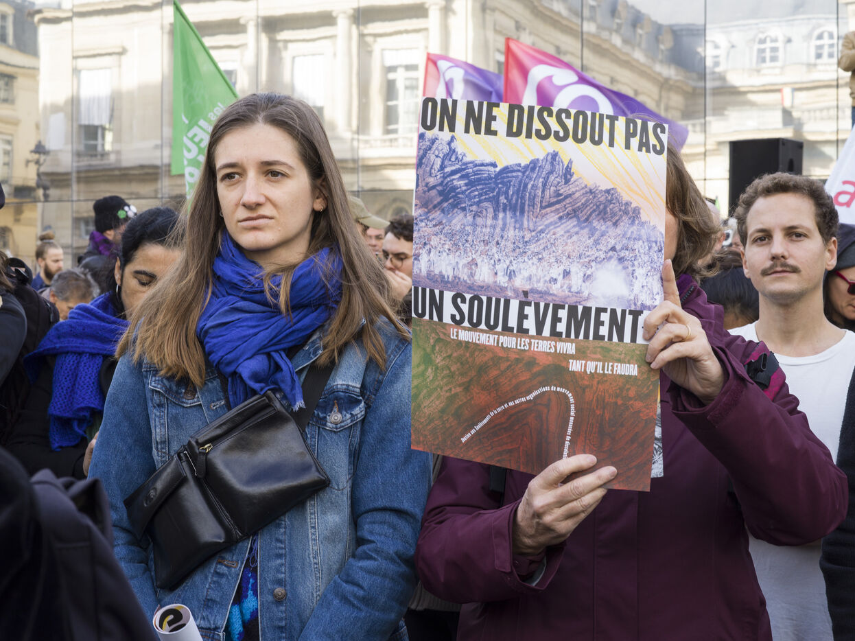 RALLY IN FRONT OF THE CONSEIL D'ETAT AGAINST THE DISSOLUTION OF SOULEVEMENTS DE LA TERRE.