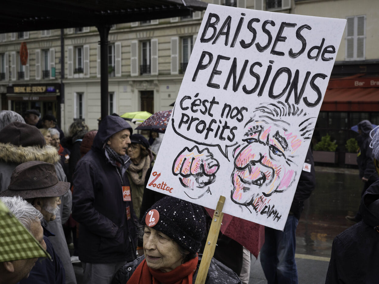 A l'appel des 9 organisations syndicales de retraités, un rassemblement est organisé devant le ministère de l'économie pour une augmentation des retraites suite à une perte de pouvoir d'achat.