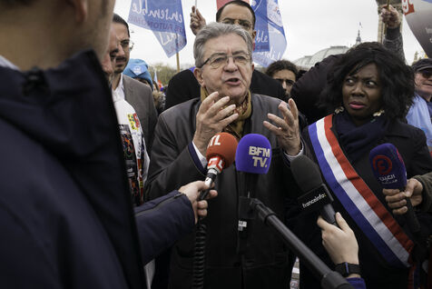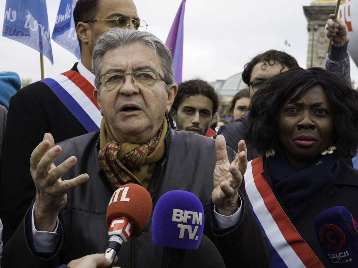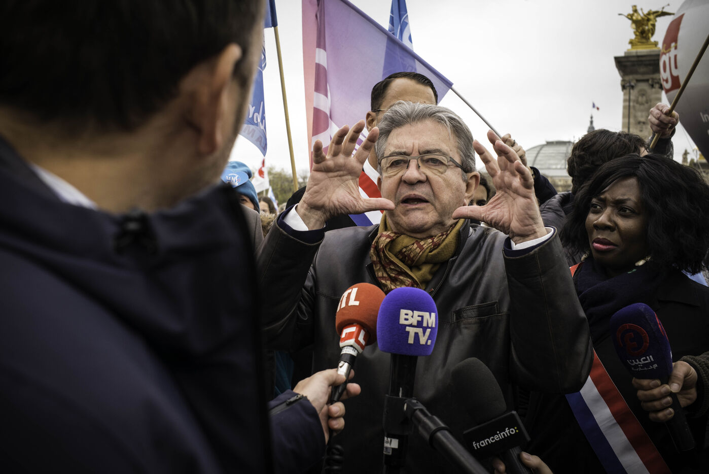 At the meeting to defend the social security and healthcare system, former France Insoumise MP Jean Luc Mélenchon came to answer journalists and talk to demonstrators on the Place des Invalides.