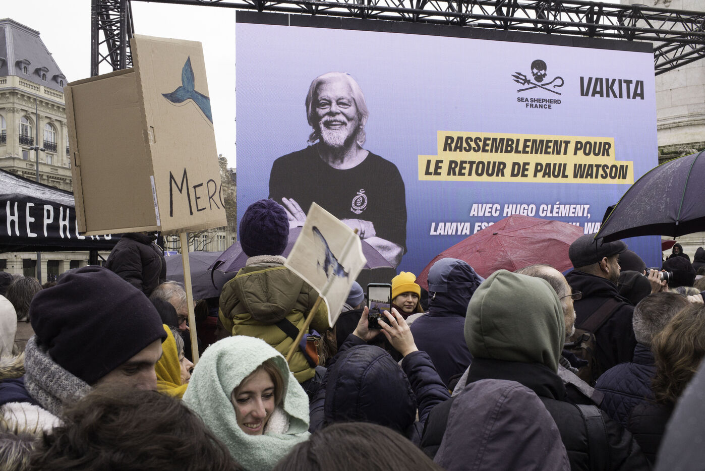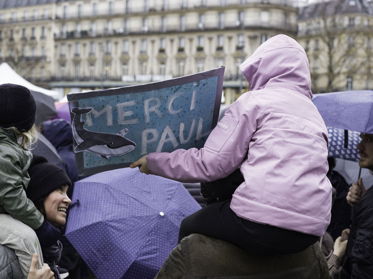 Un rassemblement est organisé sur la place de la République pour fêter la récente libération de Paul Watson, emprisonné au Groenland depuis juillet à la demande du Japon.