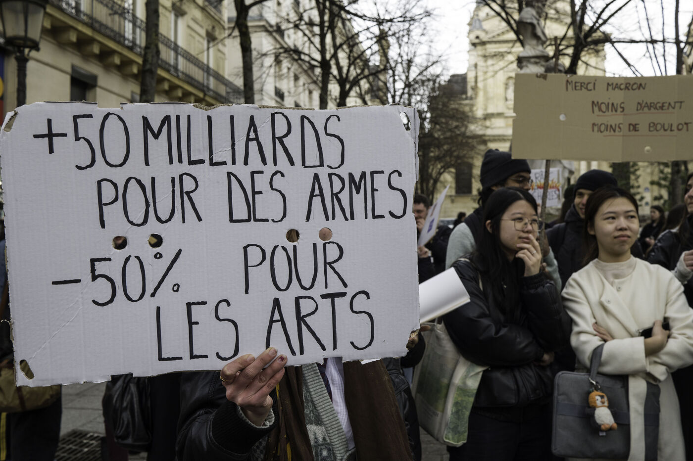 Contre l’austérité du budget dans l’enseignement supérieur et la recherche, une manifestation d’étudiants démarre de la place de la Sorbonne.