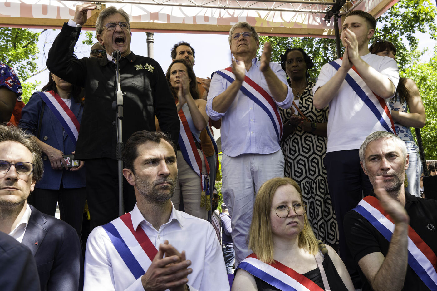 During the 1 May parade in Paris, La France Insoumise held a meeting with Jean Luc Mélenchon accompanied by numerous MPs