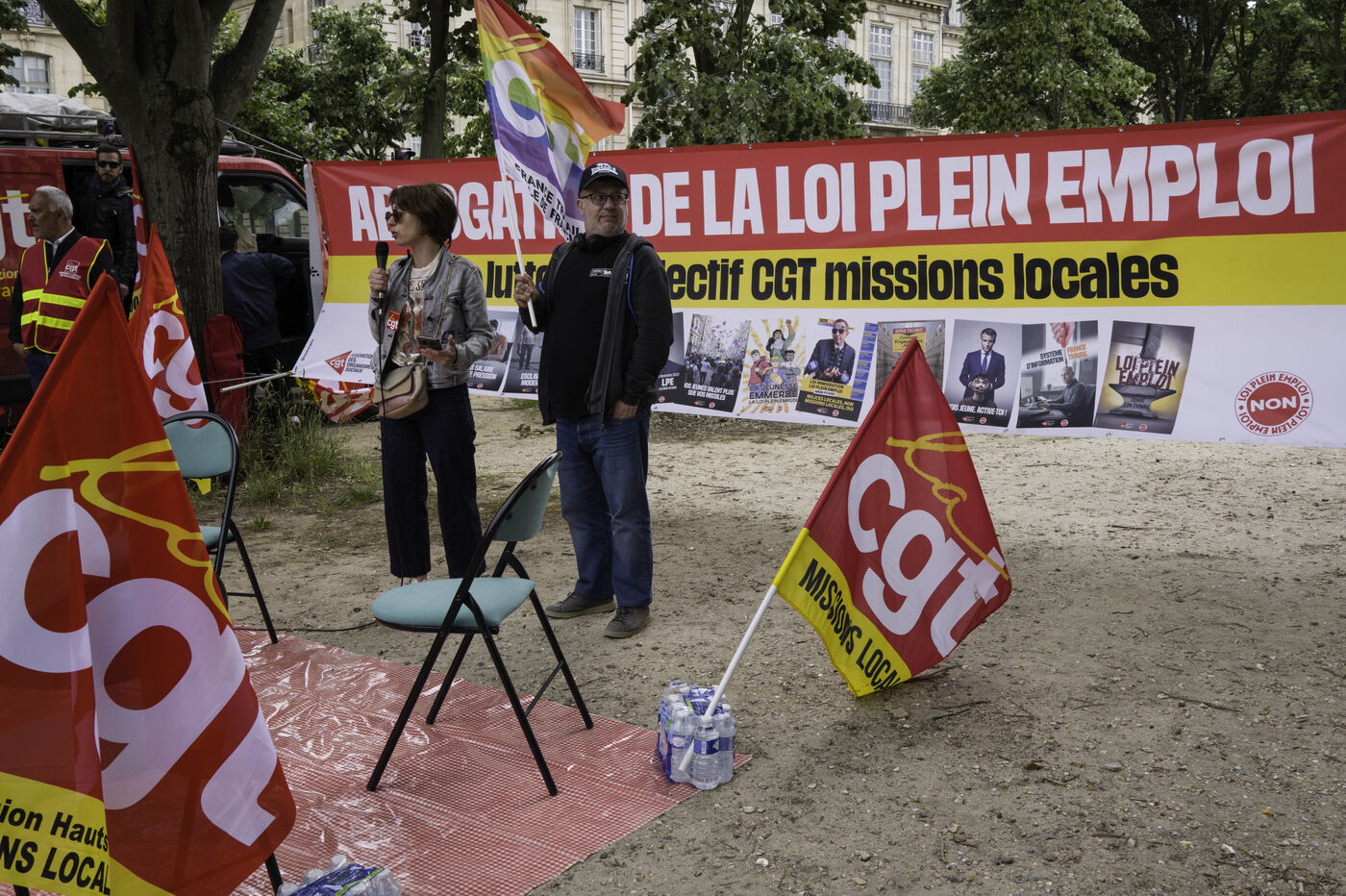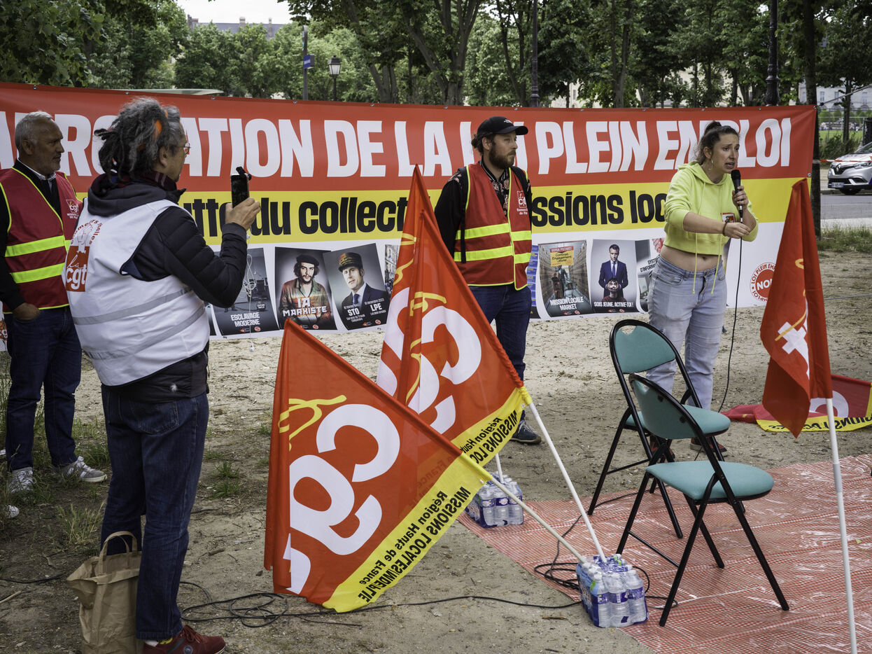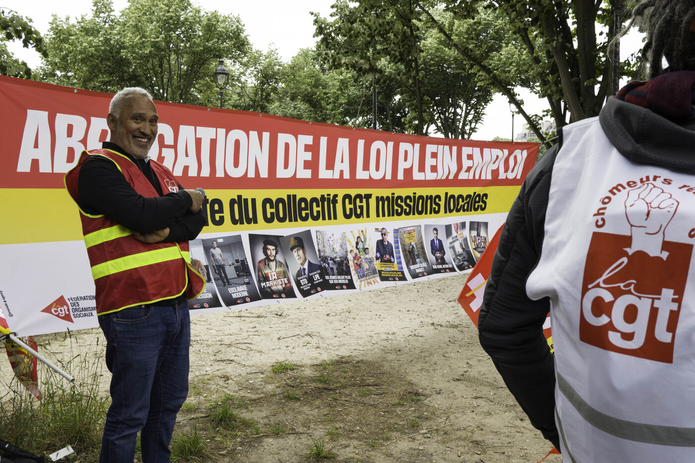 The CGT union is demanding the repeal of the Full Employment Act. Union members from the Local Missions gathered on the Esplanade des Invalides.