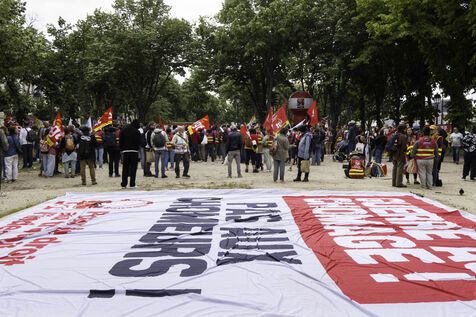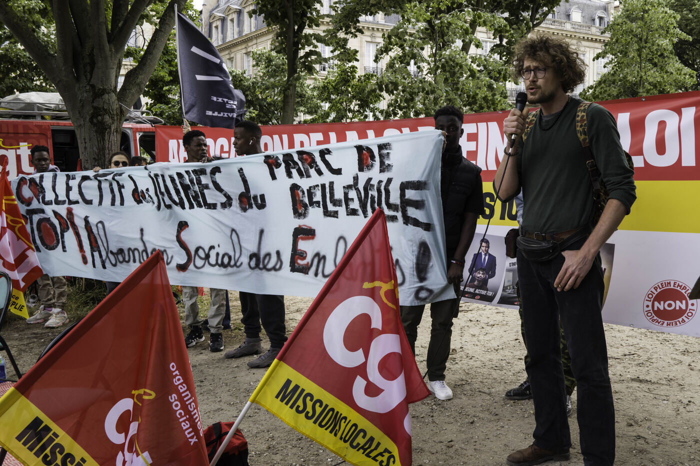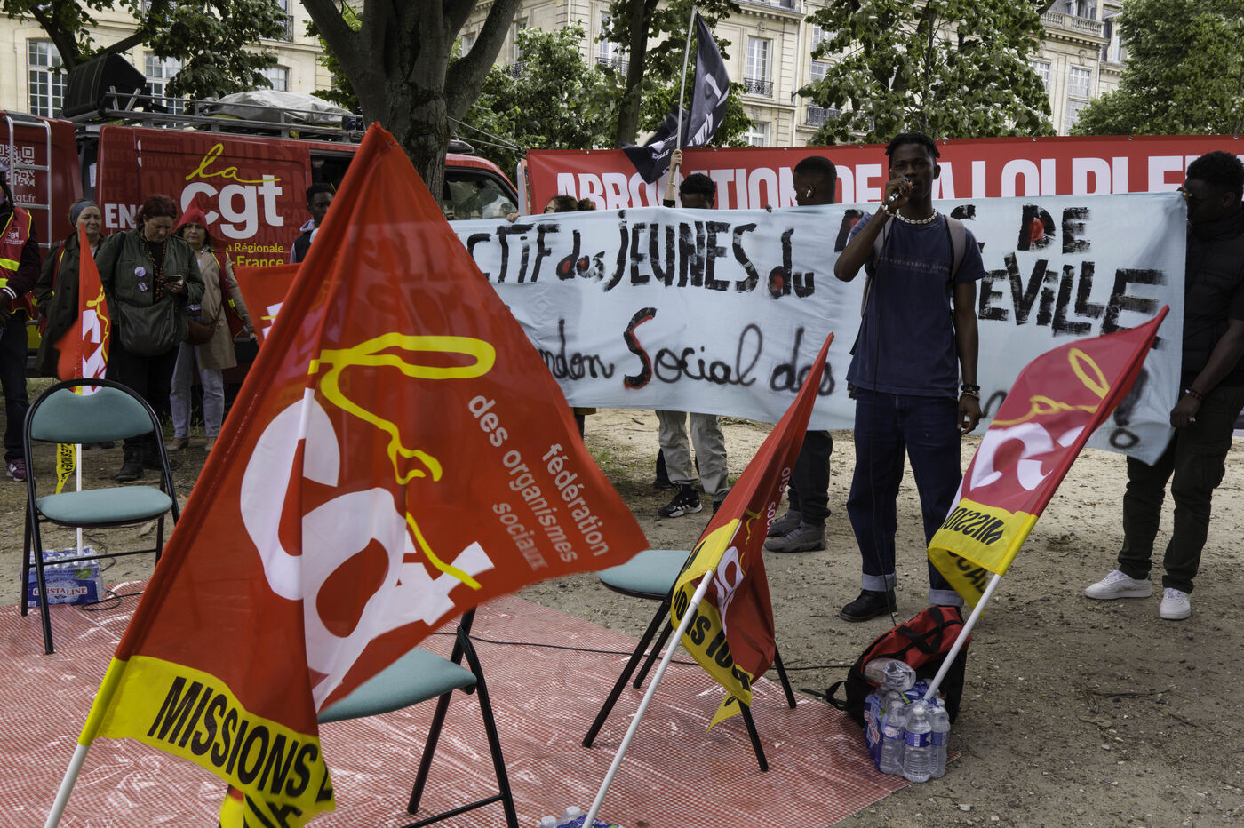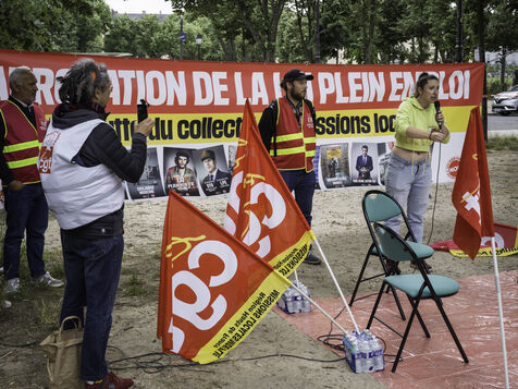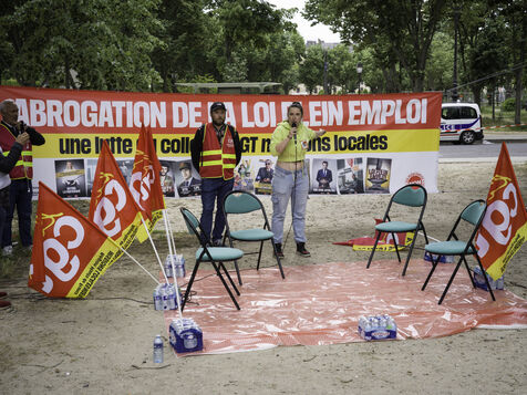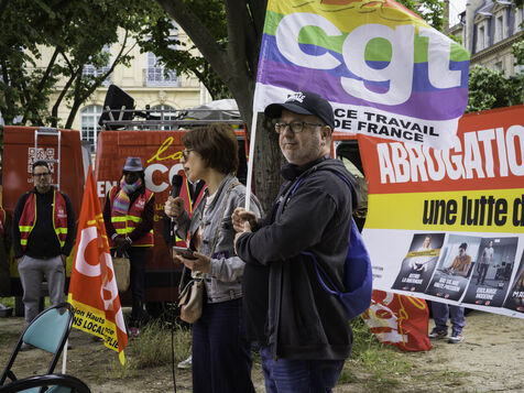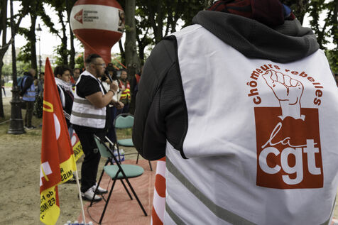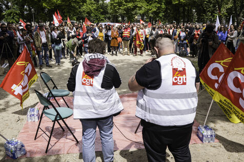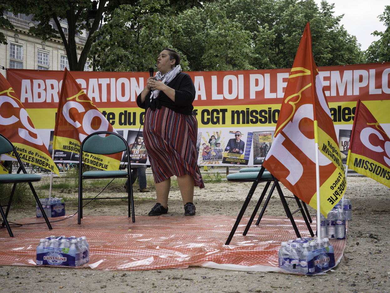 The CGT union is demanding the repeal of the Full Employment Act. Union members from the Local Missions gathered on the Esplanade des Invalides.