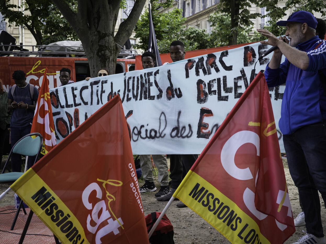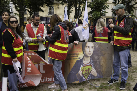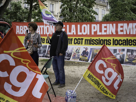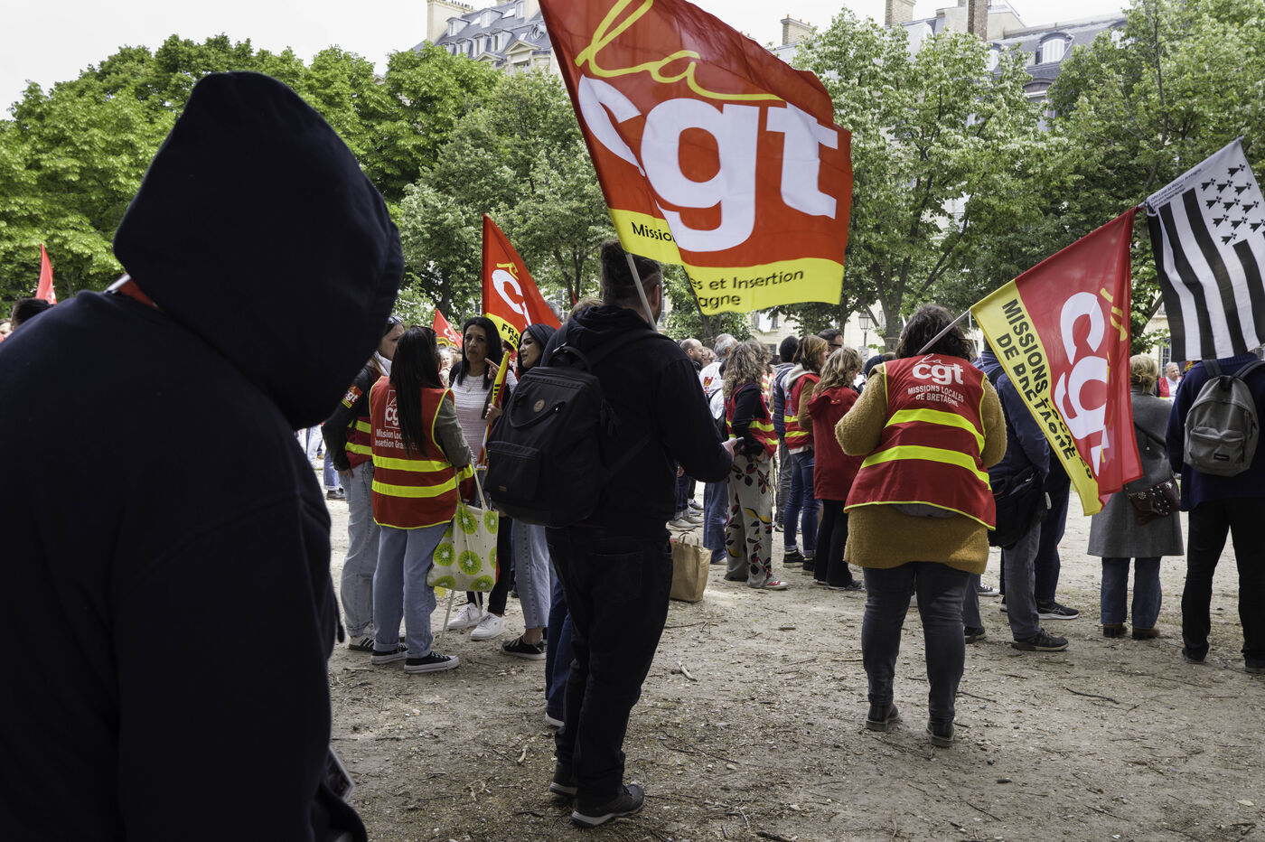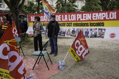La CGT exige l’abrogation de la Loi Plein Emploi. Des syndicalistes des Missions Locales se sont rassemblés sur l’Esplanade des Invalides.