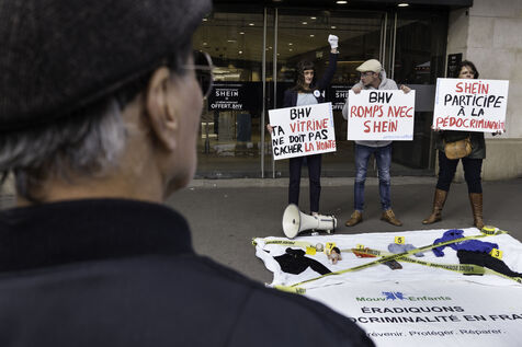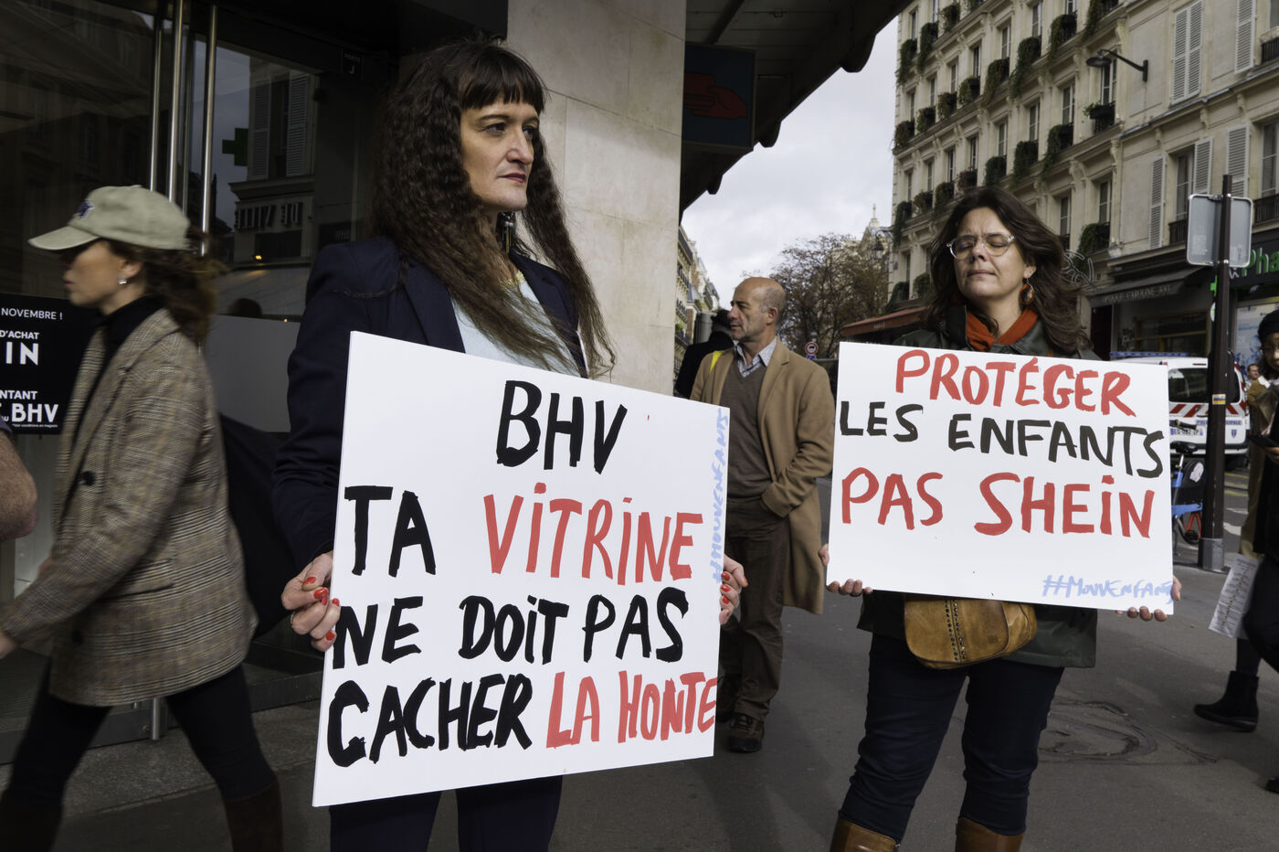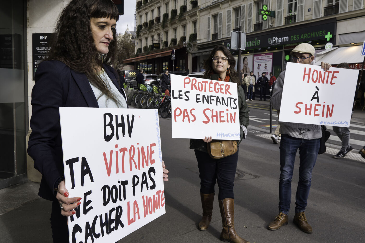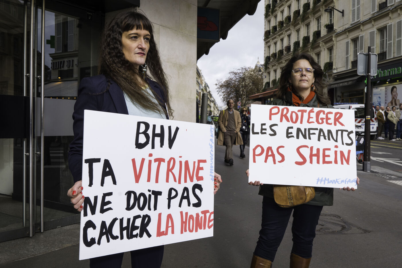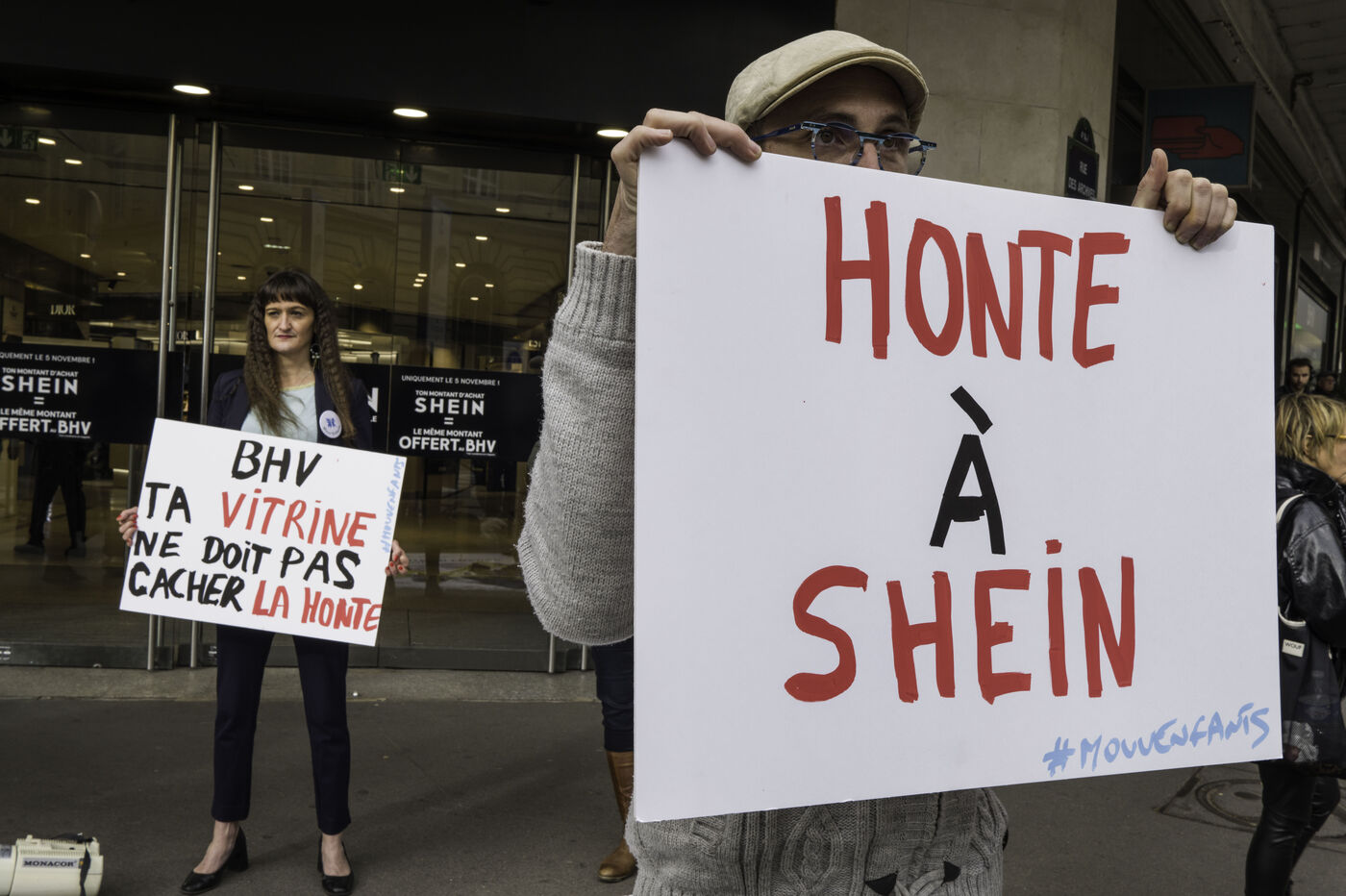 MOUV’ENFANTS MANIFESTE DEVANT LE BHV CONTRE L’OUVERTURE DU CORNER SHEIN