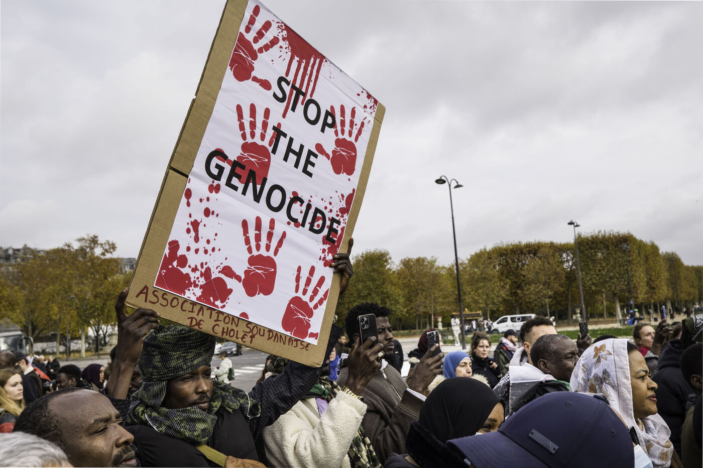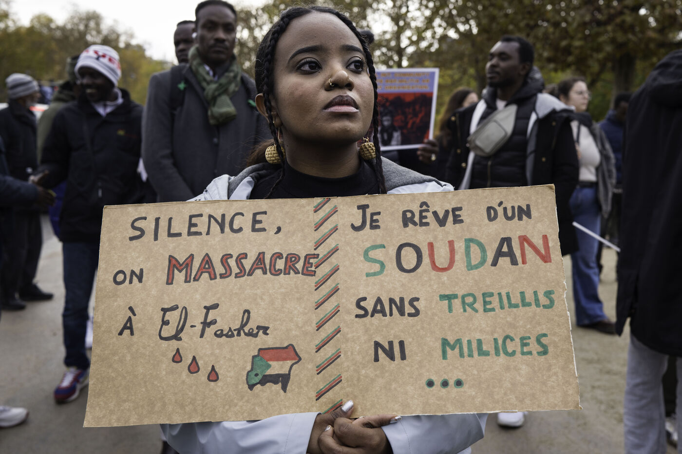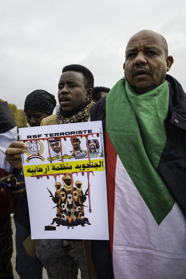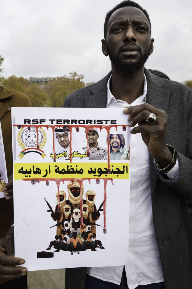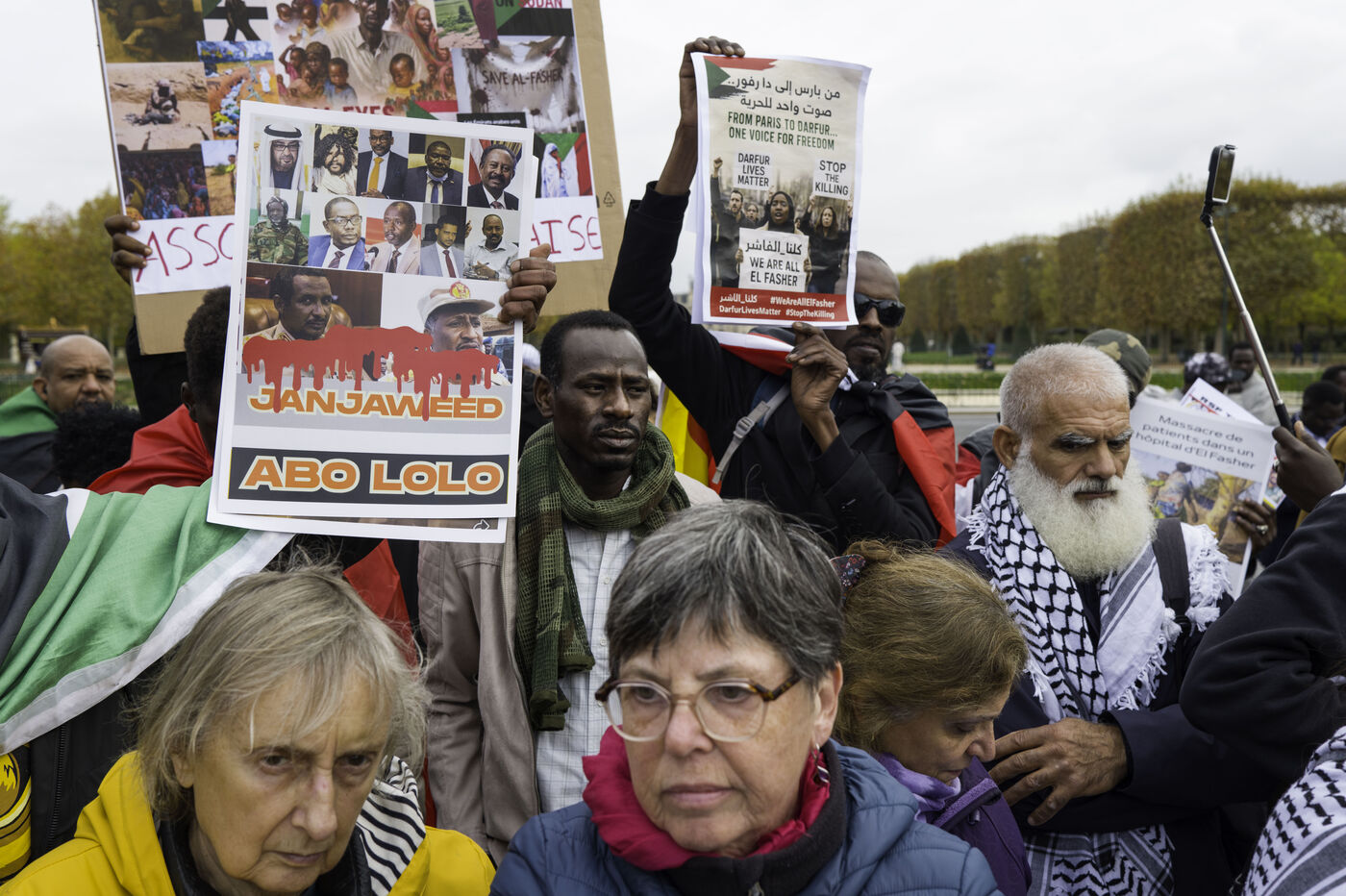 Pour manifester la solidarité avec le peuple soudanais, dénoncer le génocide au Darfour mené par les FSR, un rassemblement est organisé sur le champs de Mars.