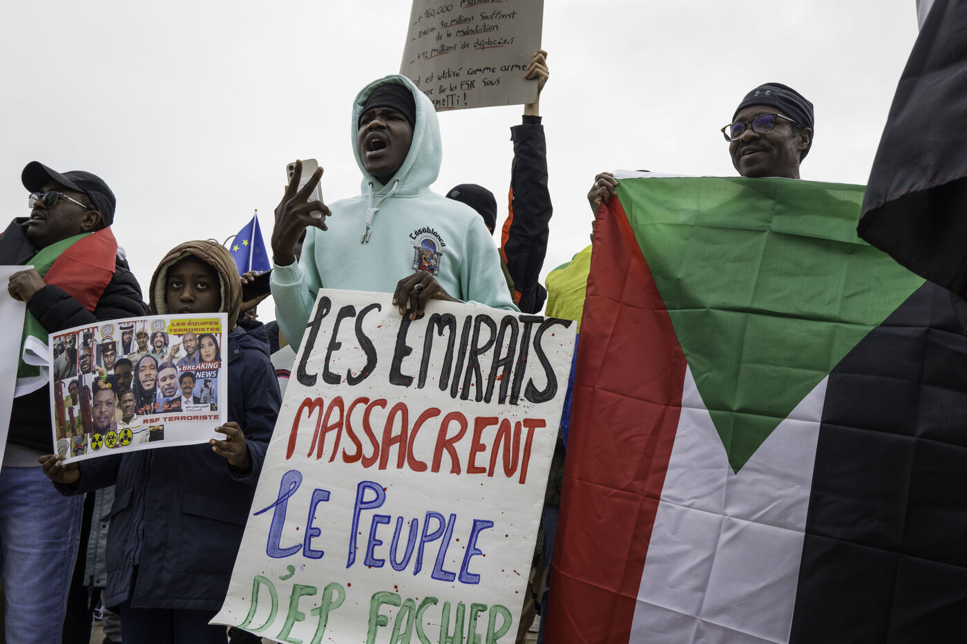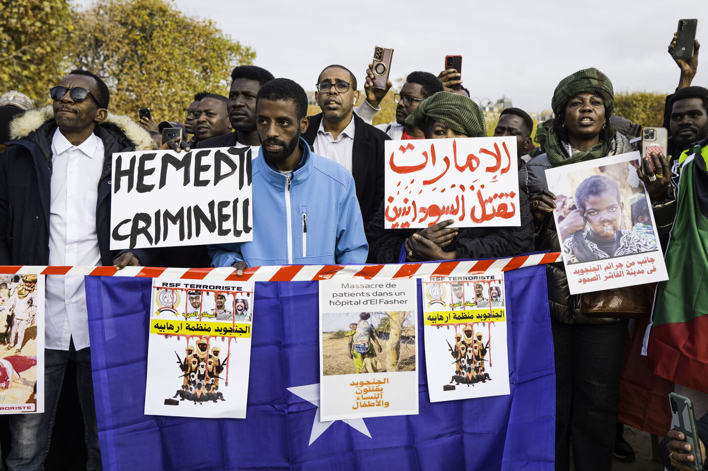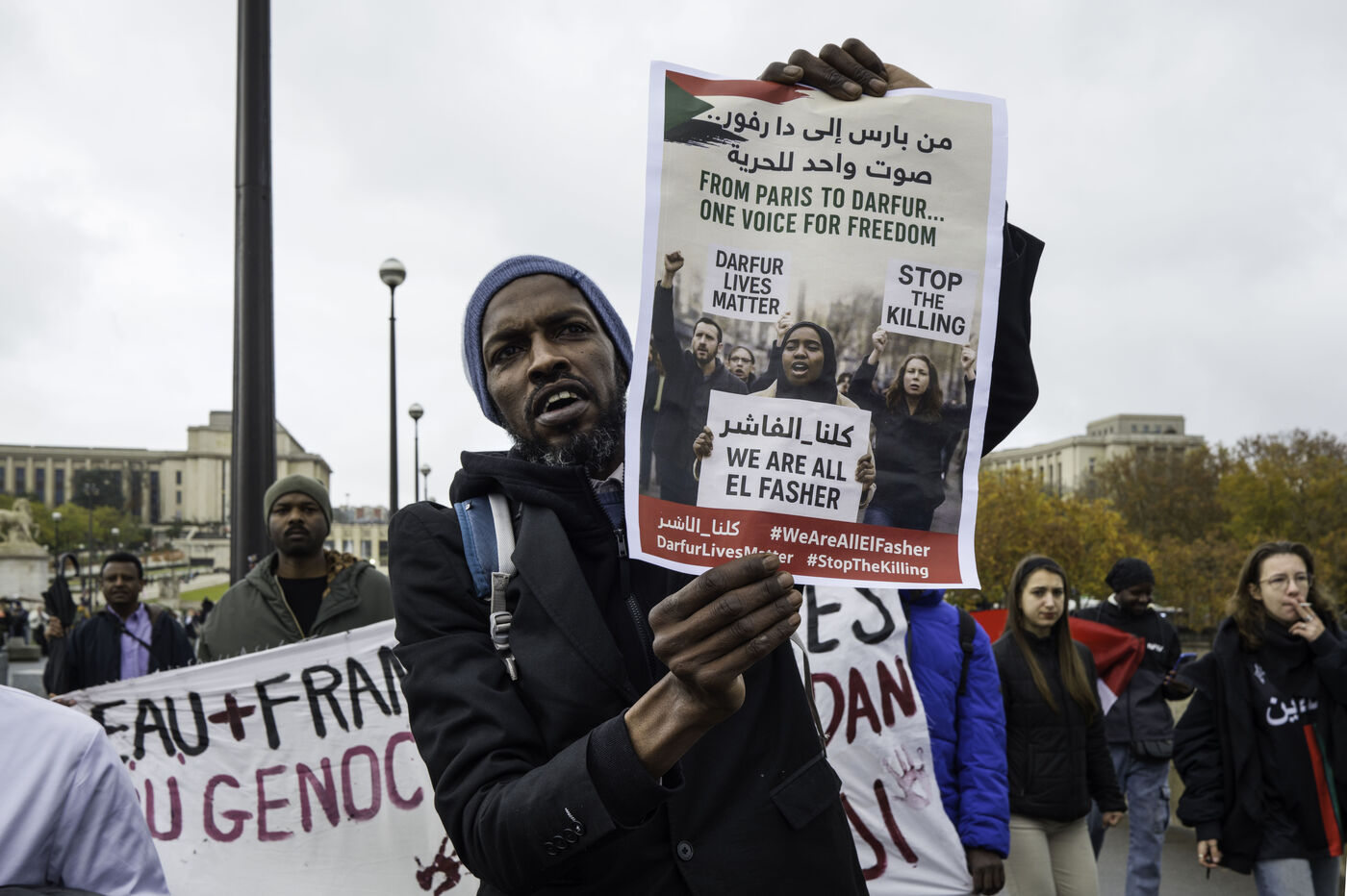 Pour manifester la solidarité avec le peuple soudanais, dénoncer le génocide au Darfour mené par les FSR, un rassemblement est organisé sur le champs de Mars.
