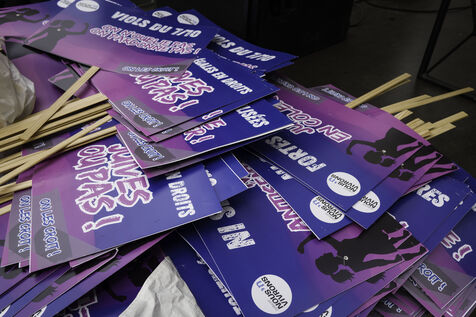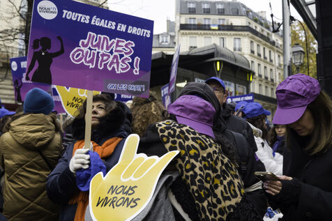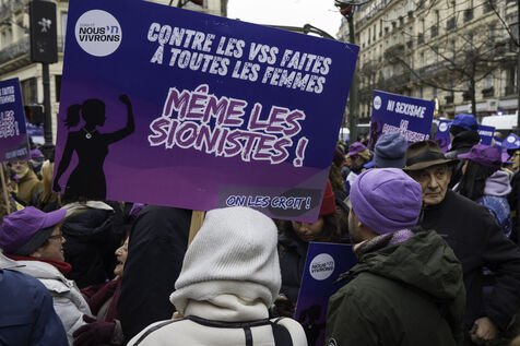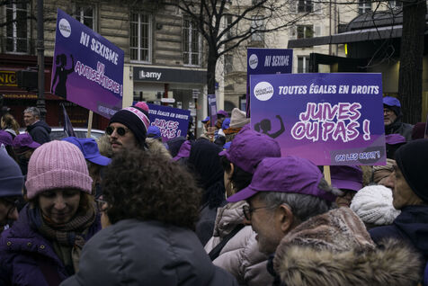 THE COLLECTIVE NOUS VIVRONS MARCHES AT THE END OF A FEMINIST DEMONSTRATION