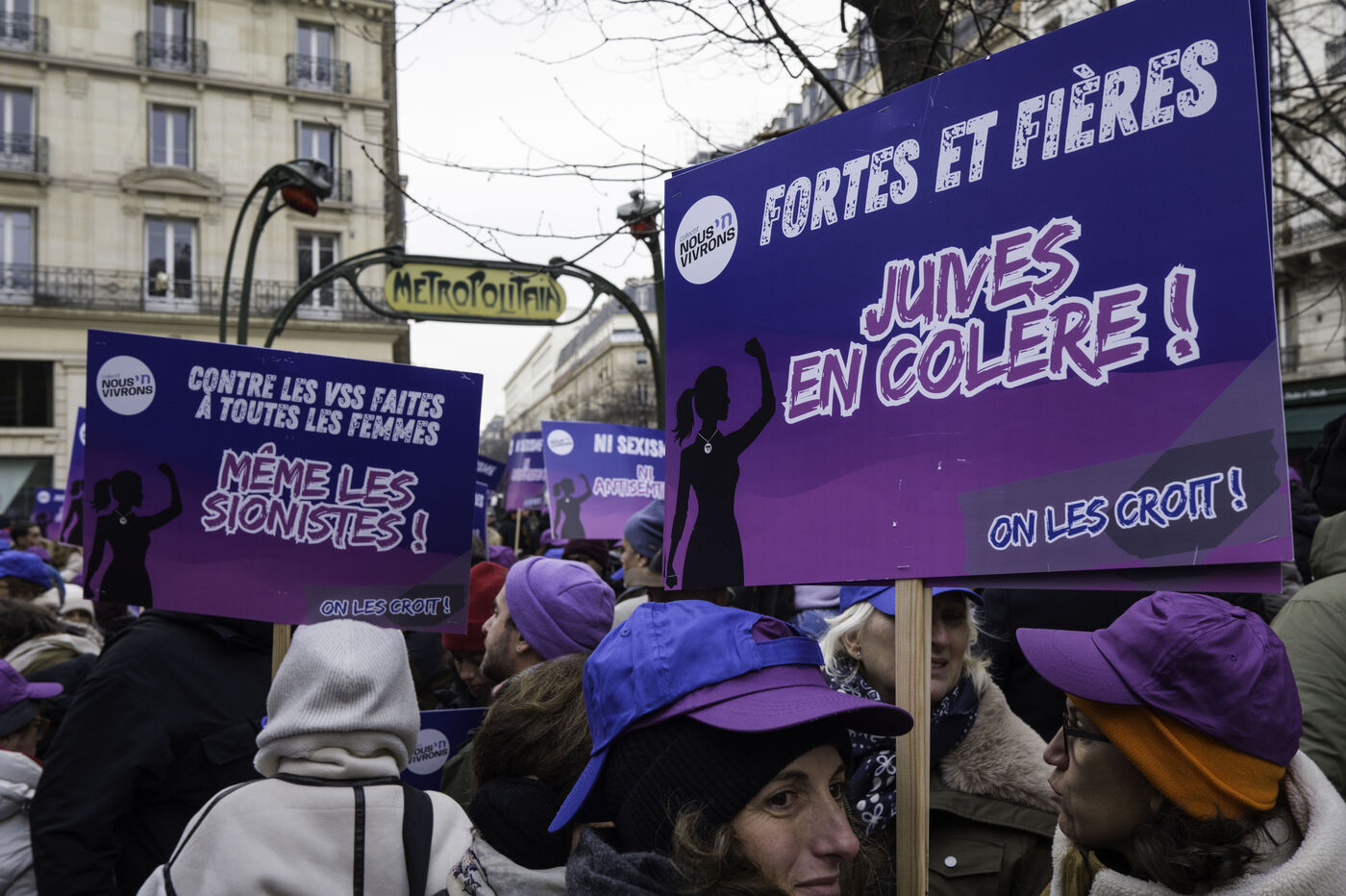 LE COLLECTIF NOUS VIVRONS MARCHE EN FIN DE MANIFESTATION FÉMINISTE