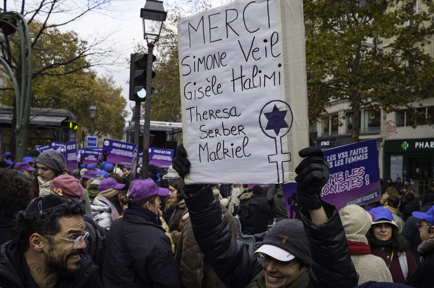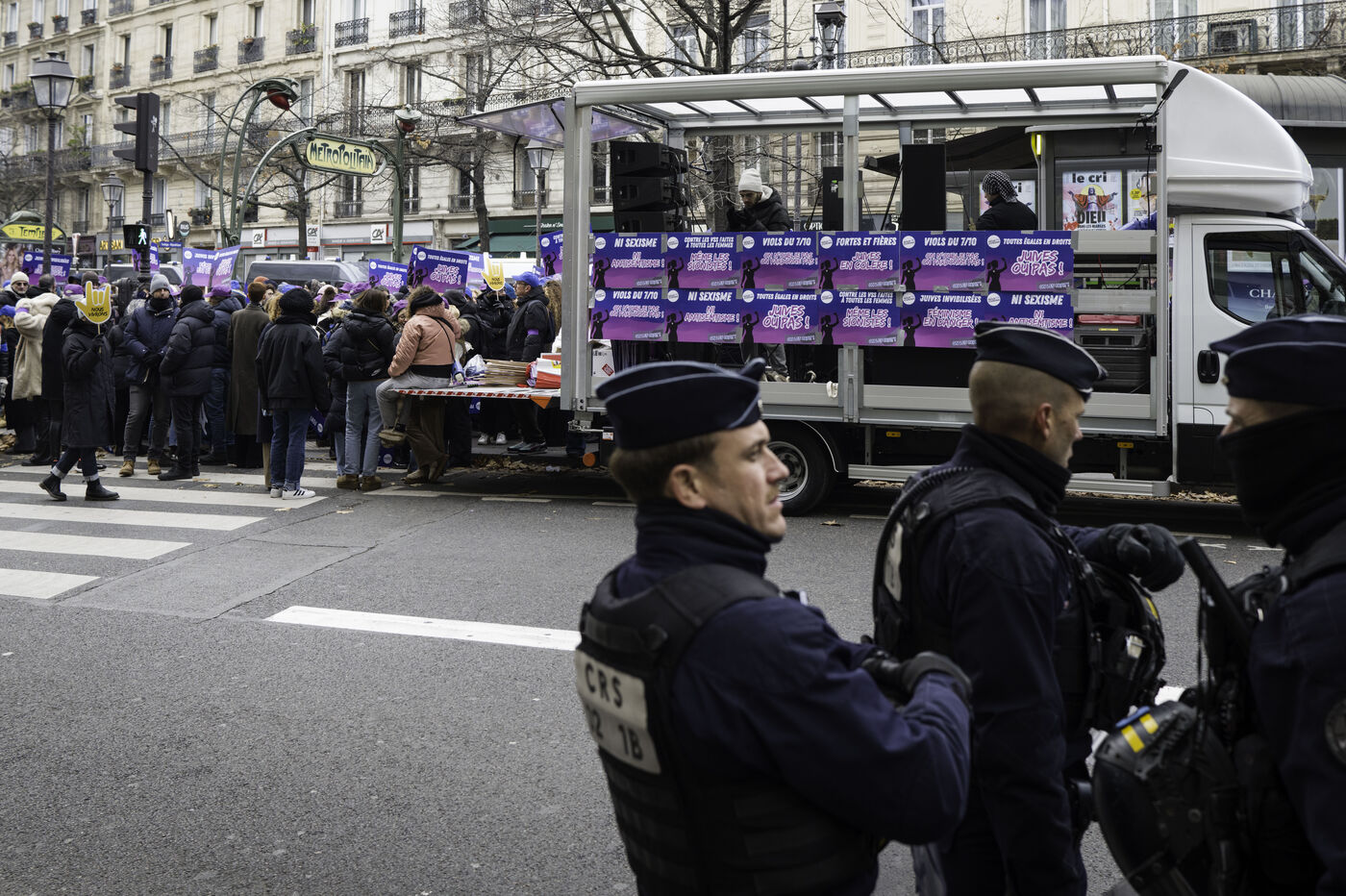 The collective ‘Nous vivrons’ marched under police escort at the end of a feminist demonstration against gender-based and sexual violence.