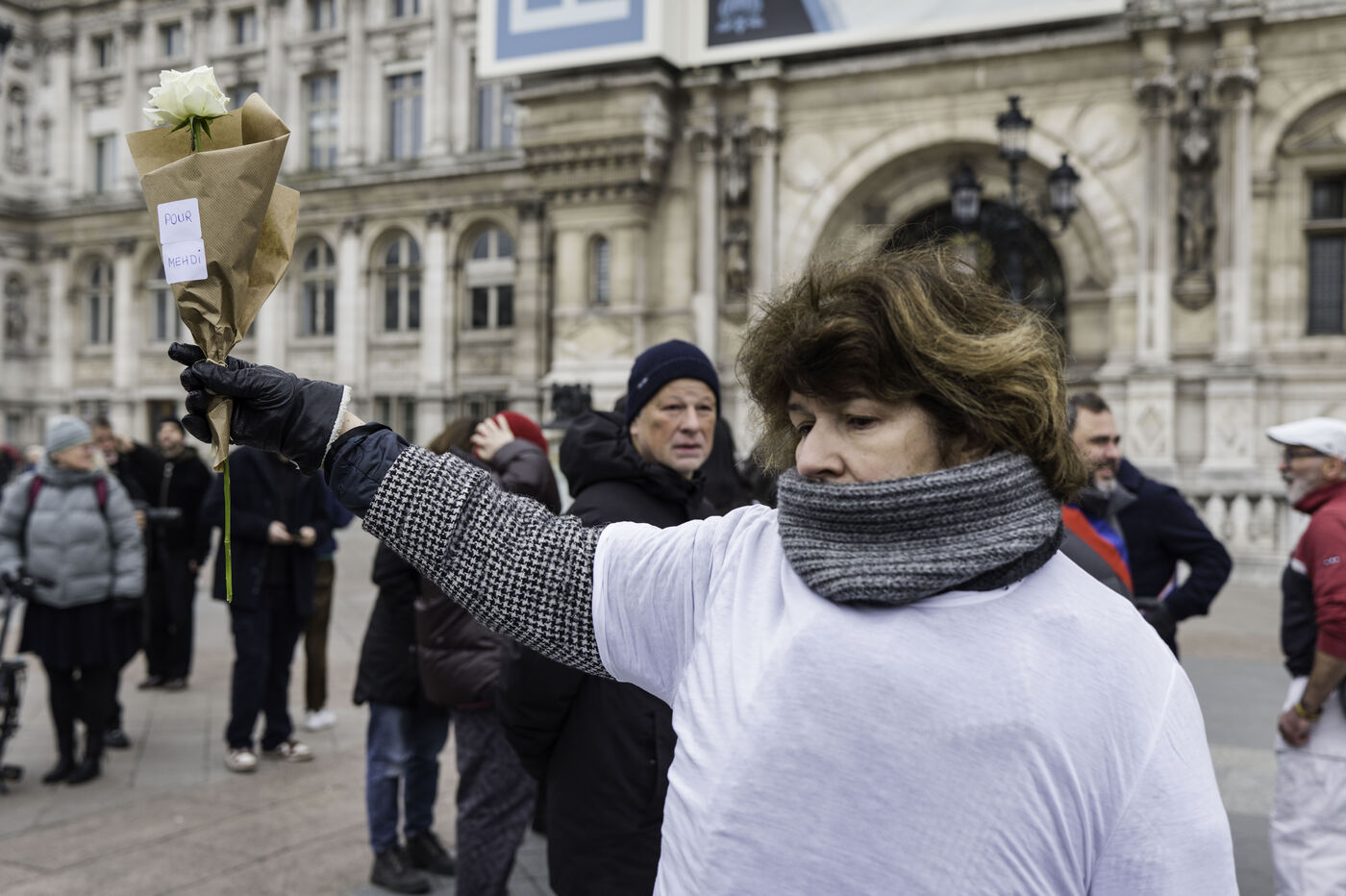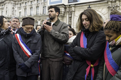 Un hommage à Mehdi Kessaci, le petit frère assassiné à Marseille, est organisé sur la place de l’hotel de ville de Paris.