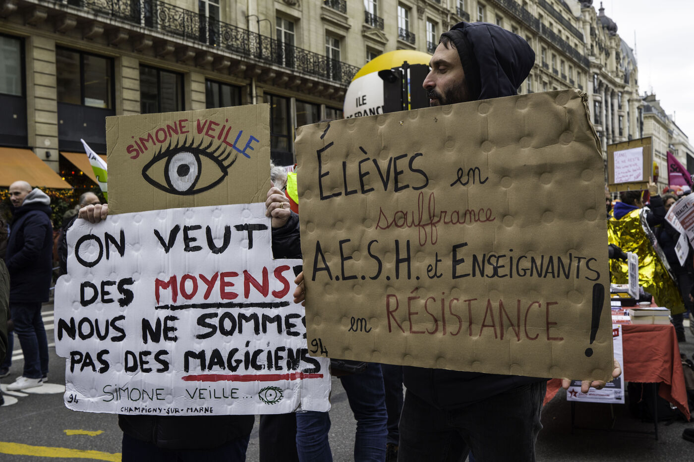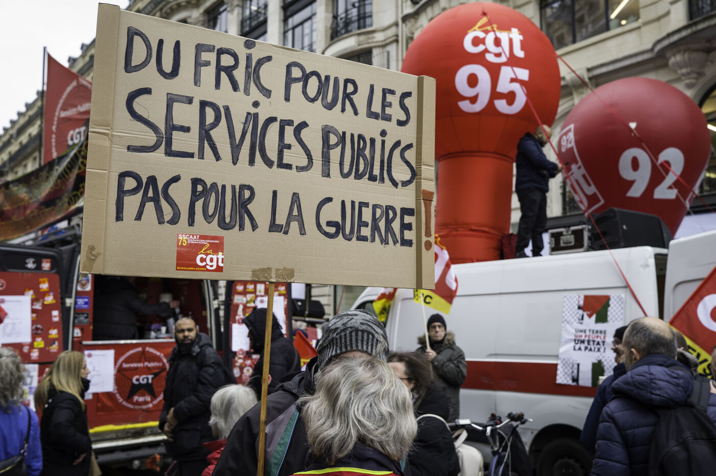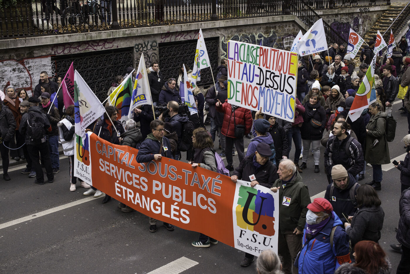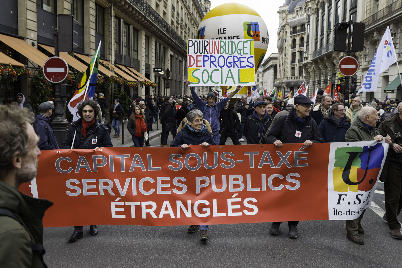 A l’appel de trois syndicats CGT, FSU, Solidaires, une manifestation est organisée contre le budget d’austérité 2026, au départ de la place de la Bourse.