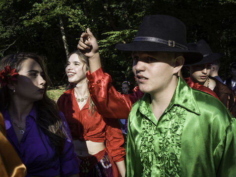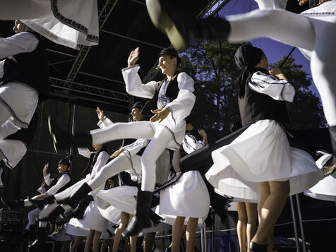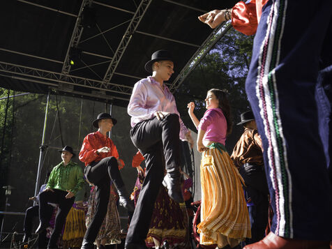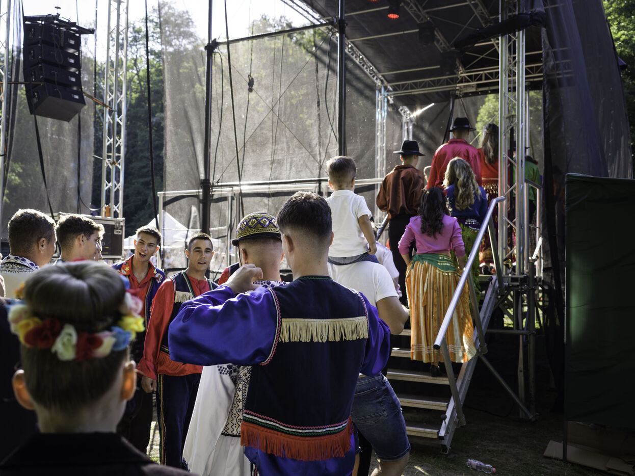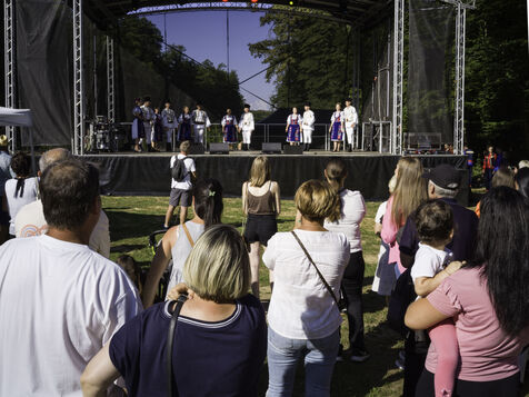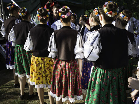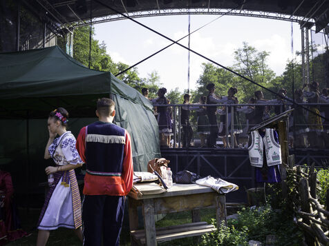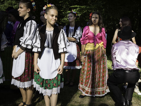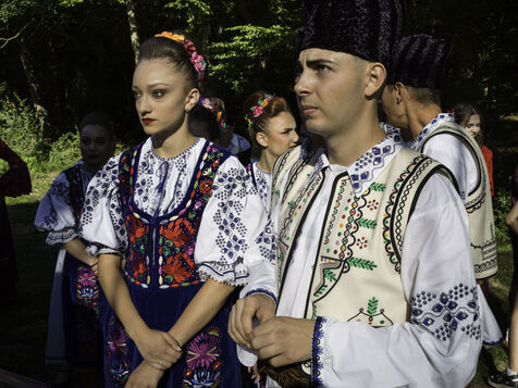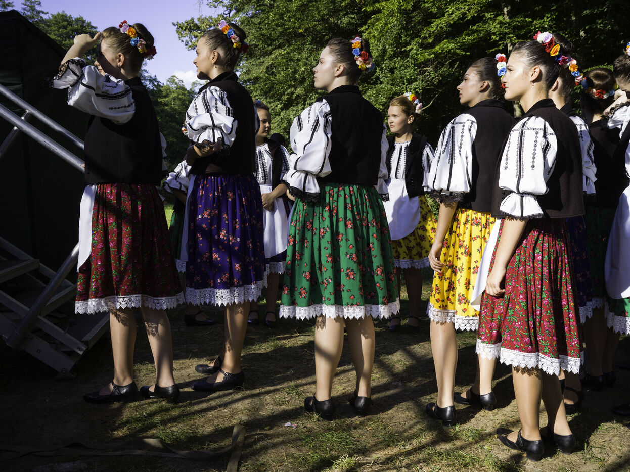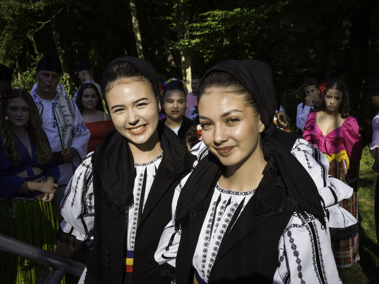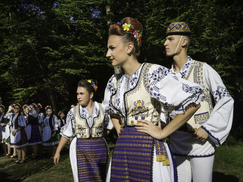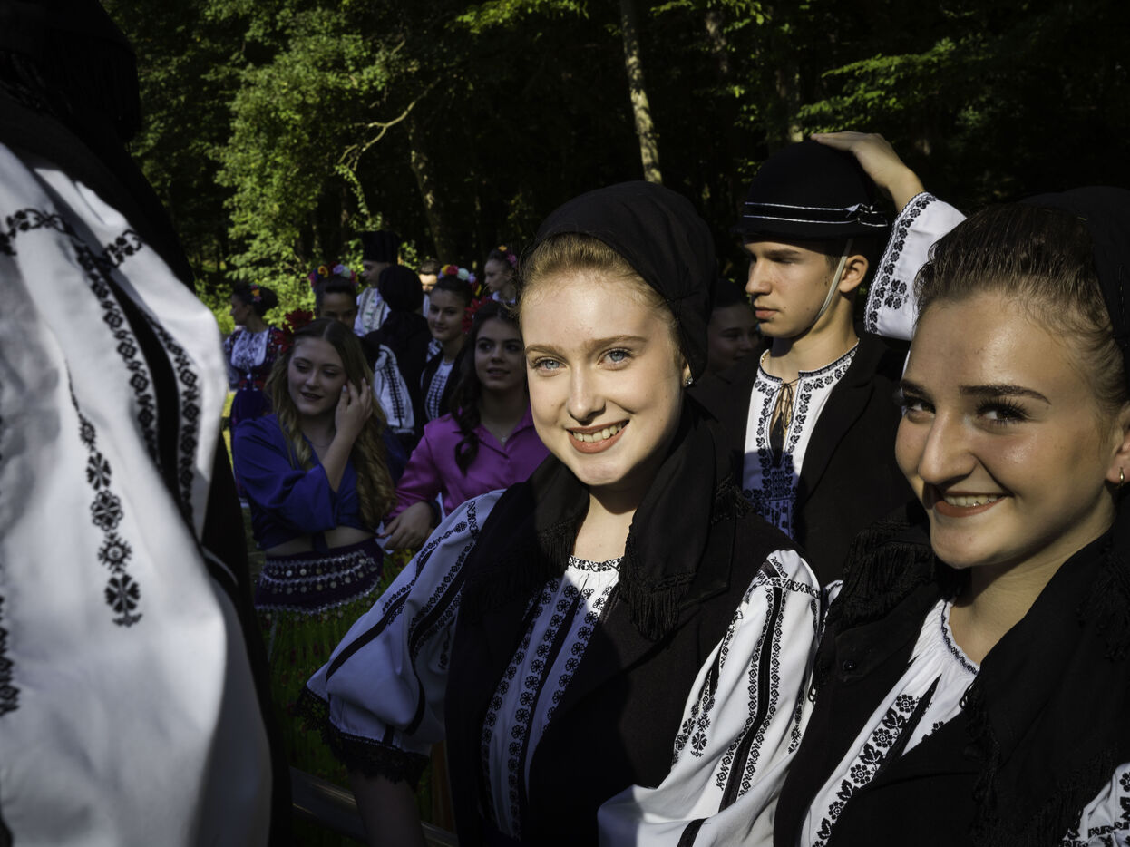 A folk dance festival is being held in the Dumbrava Sibiului Natural Park.. Sibiu, one of the largest cities in Transylvania, was founded by German settlers in the 12th century.