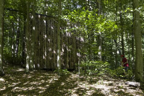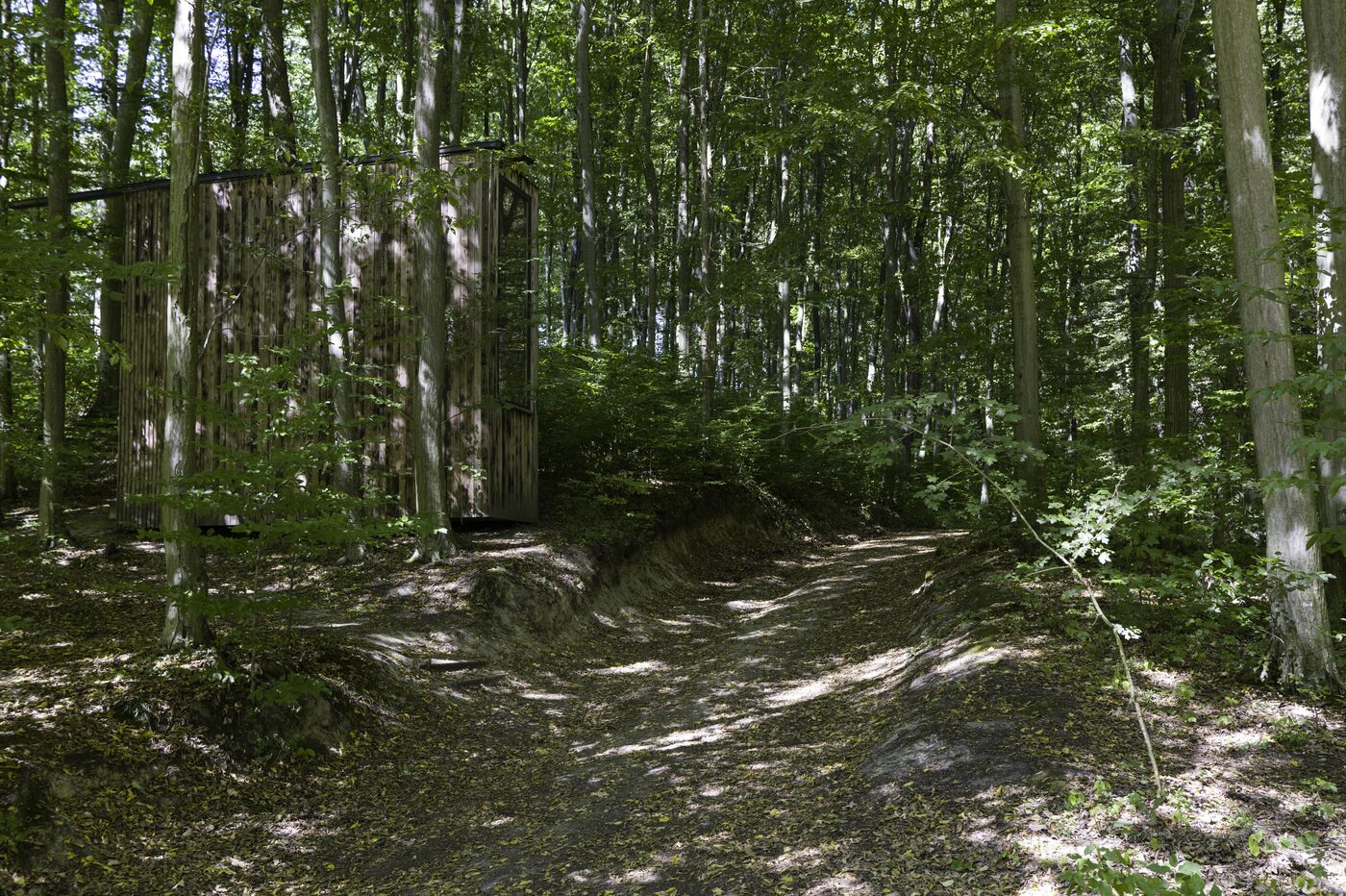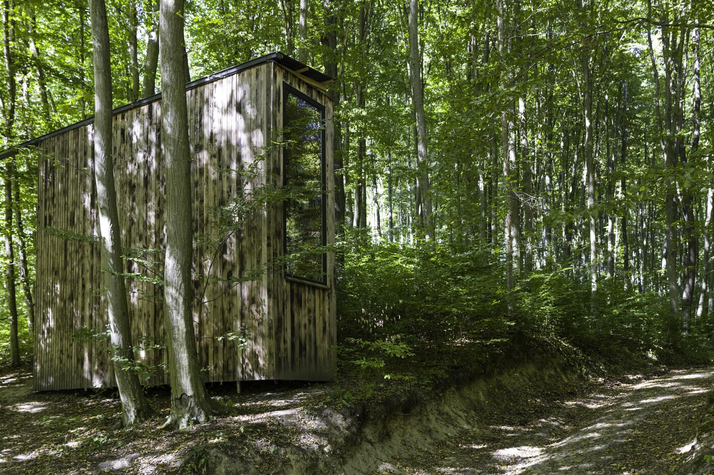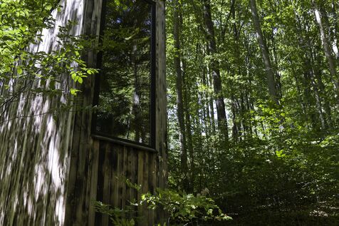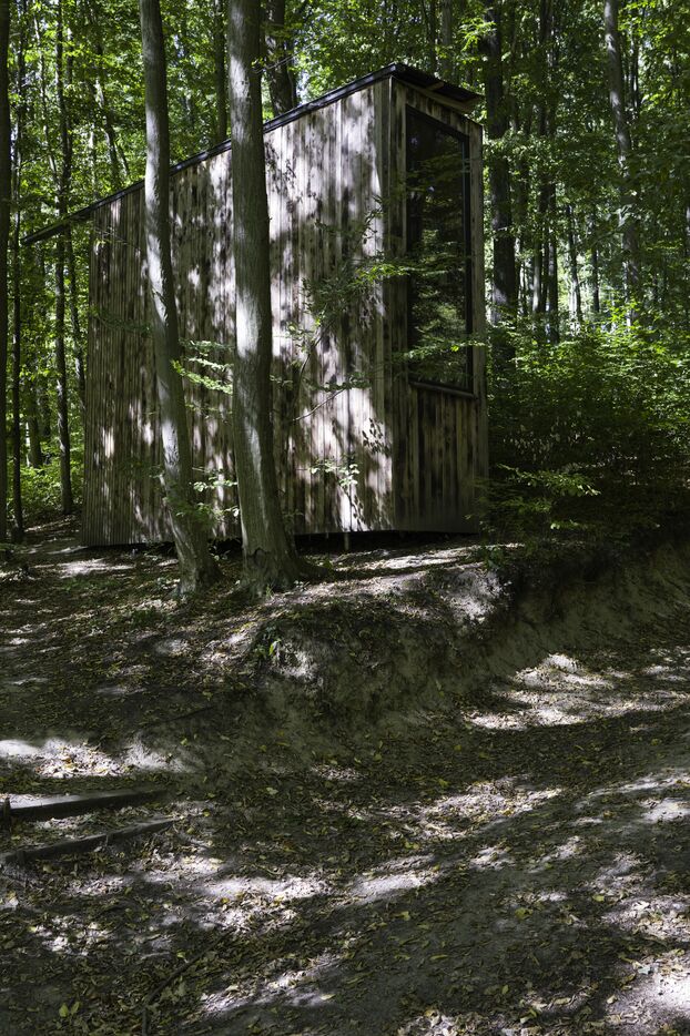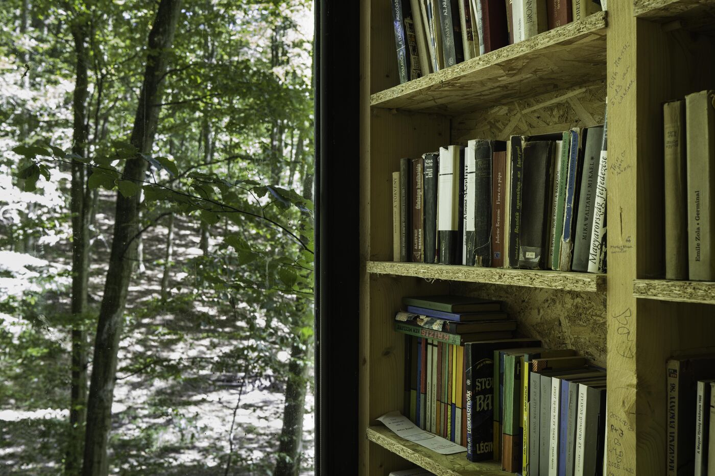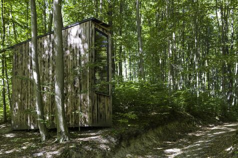 In the Csinger Forest, a wooden cabin was designed by students from the Moholy-Nagy University of Art and Design in 2022. It is a reading cabin. The two large side walls are covered with shelves on three levels. It can also accommodate three people for camping in the middle of a beech forest.