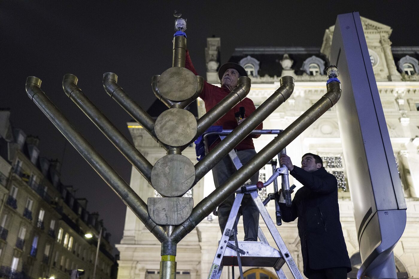 Pour huit jours de célébration des fêtes juives de Hanouka, la première bougie va être allumer sur un ménorah géant installé sur la place Jules Joffrin, à la tombée de la nuit.