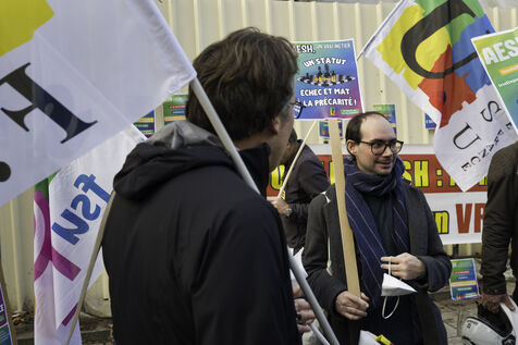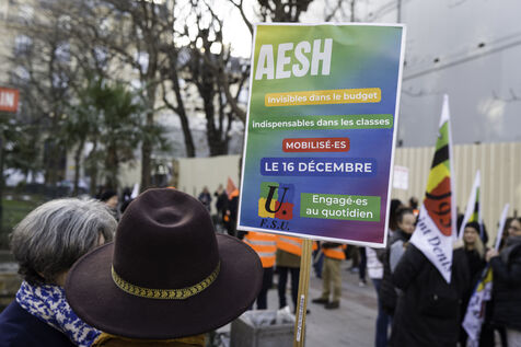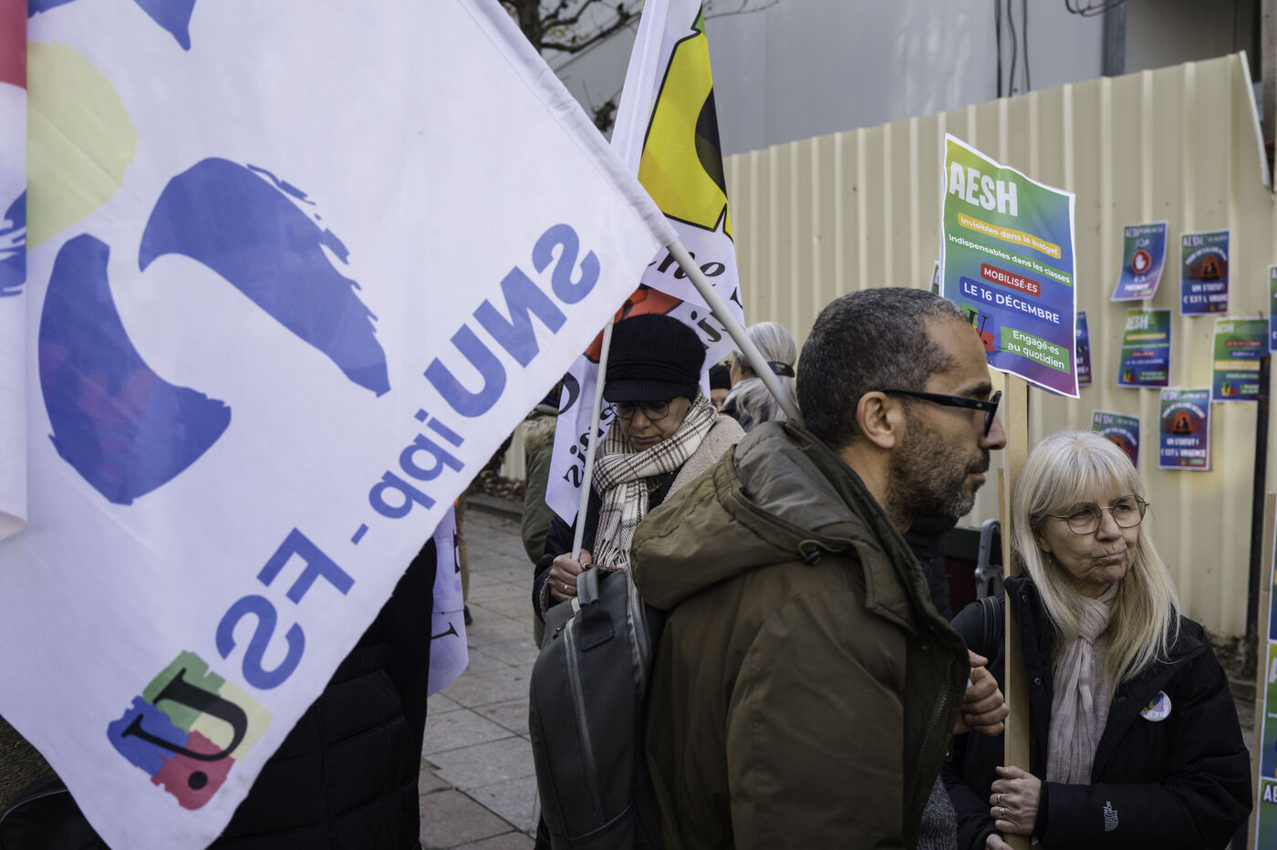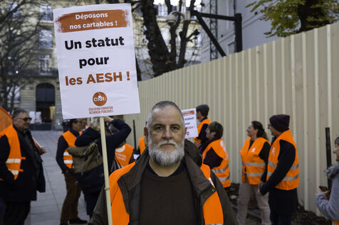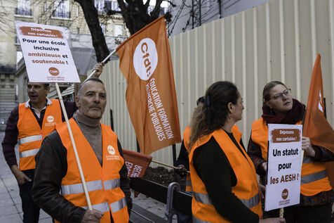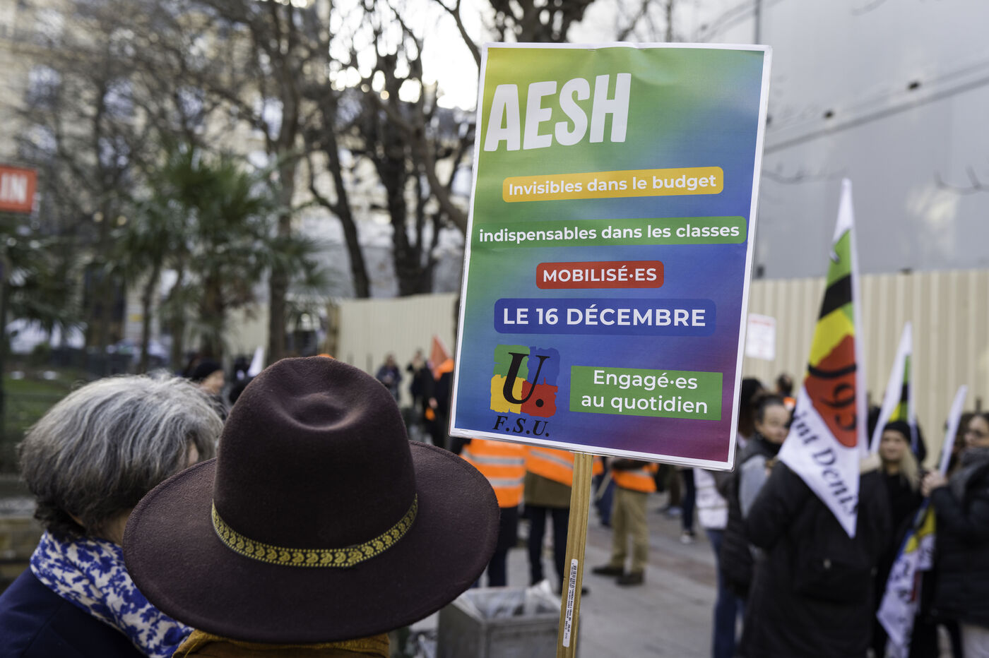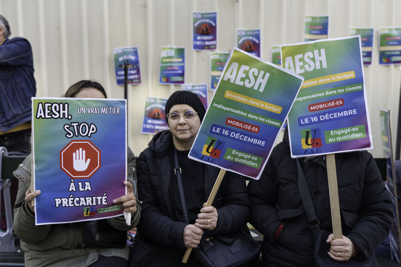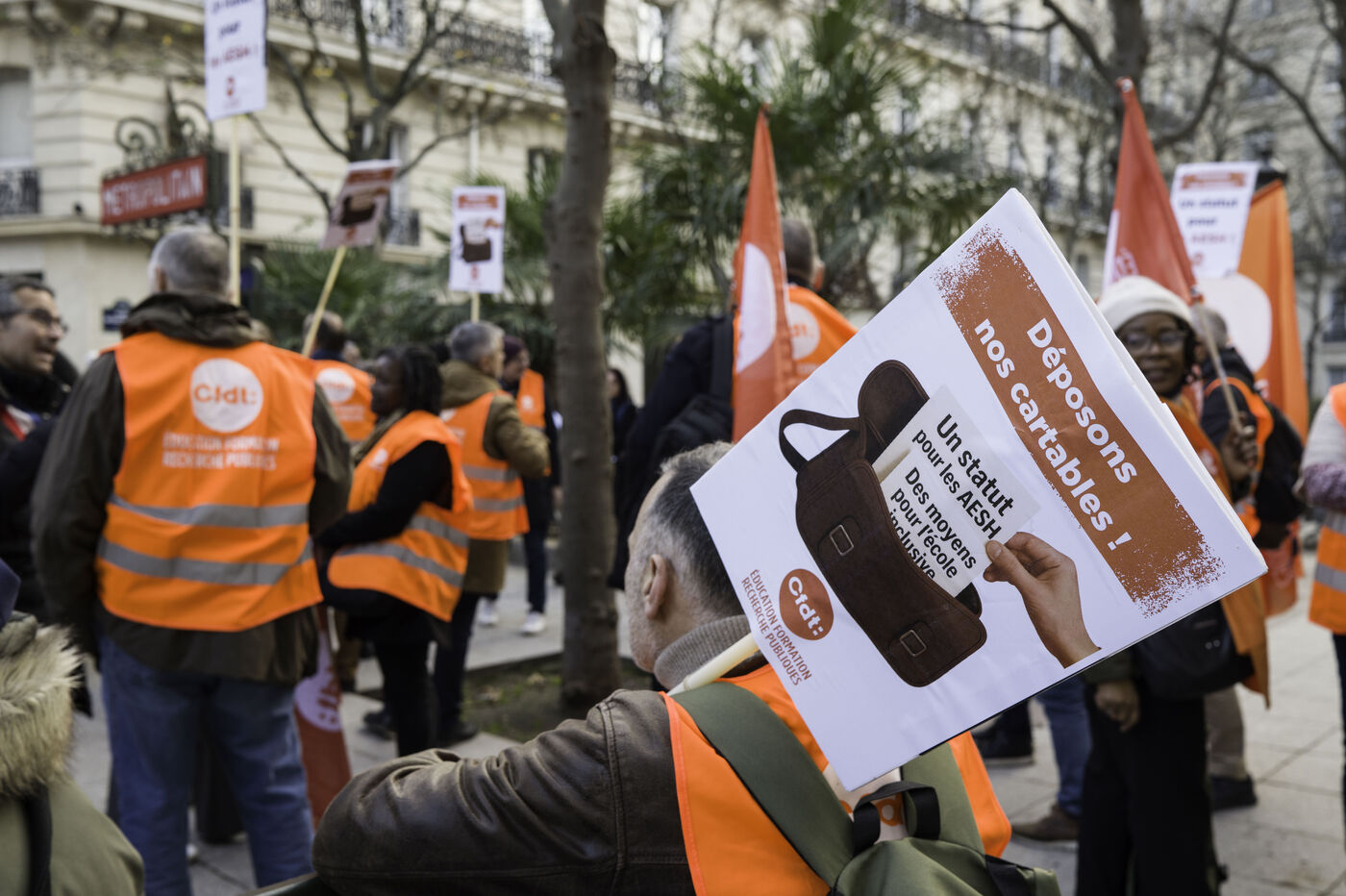 AESH and AEd staff are on strike and gathering at Place de Bainville in Paris's 7th arrondissement to demand proper pay and status. AESH and AED jobs are the most precarious in the French education system.