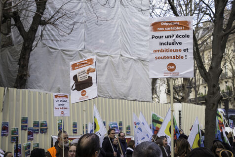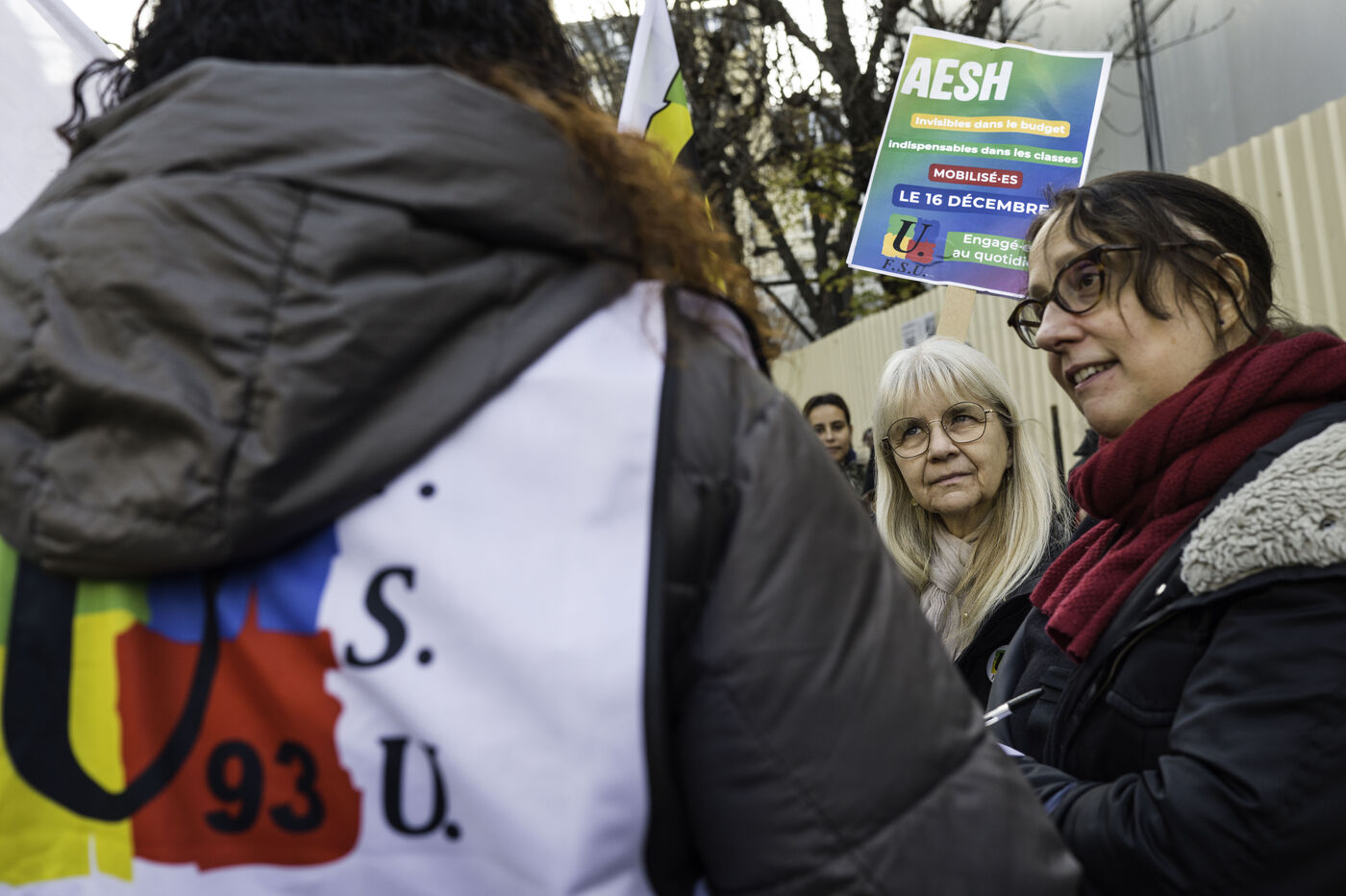 Les AESH et les AEd sont en grève et se rassemblent place de Bainville dans le 7ème arrondissement de Paris pour obtenir un vrai salaire et un vral statut. Les métiers d’AESH et d’AED sont les plus précarisés de l’Education nationale.