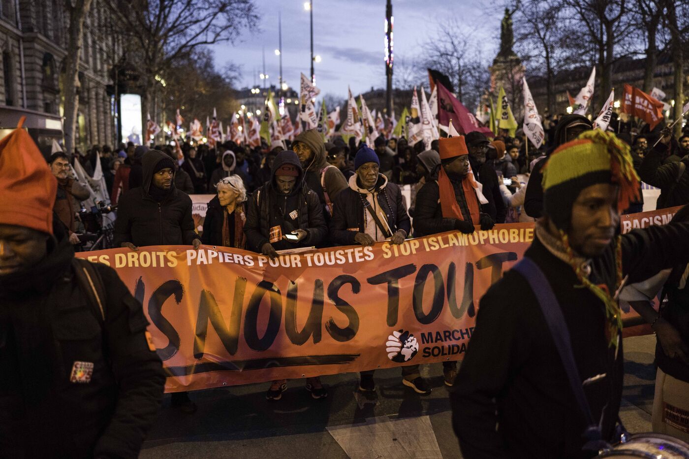À l’occasion de la Journée internationale des migrant·es, collectifs de sans-papiers, associations antiracistes et syndicats appellent à une journée d’action « Une journée sans nous ». Une manifestation part de la place de la République vers la place de Clichy.
