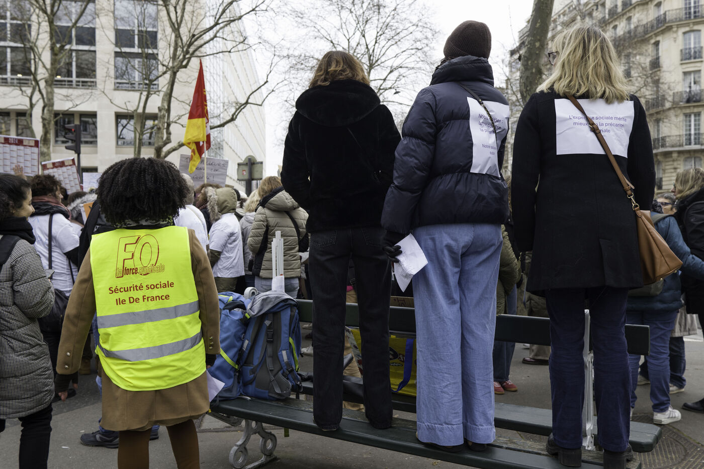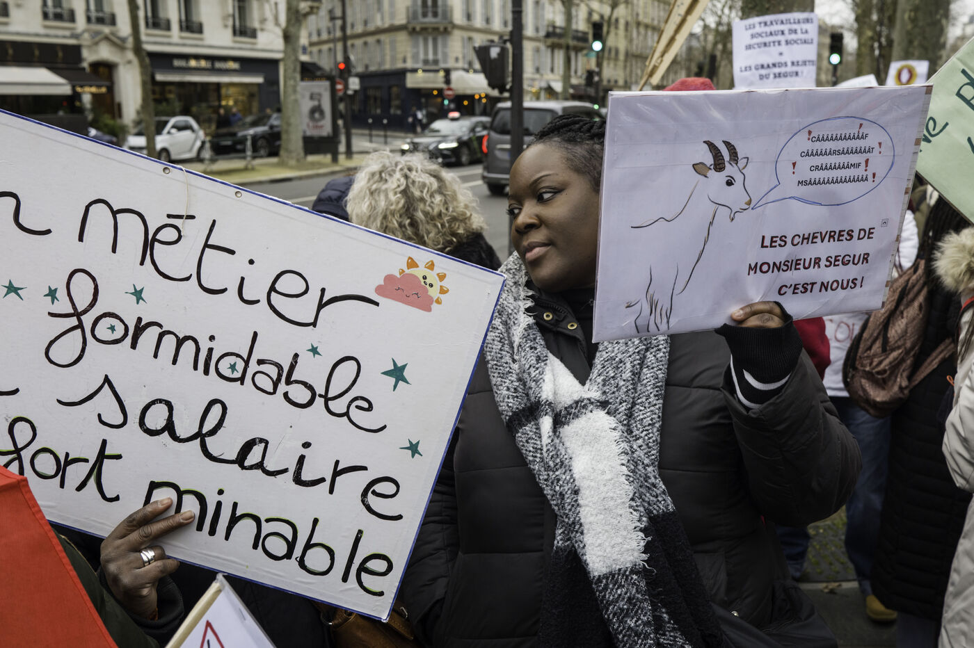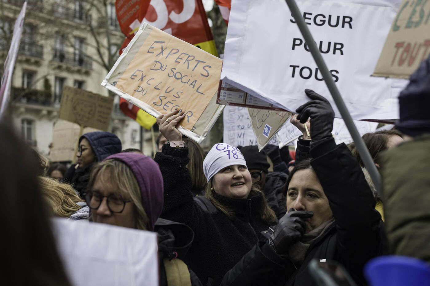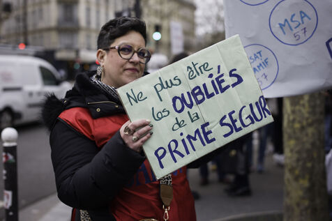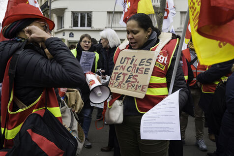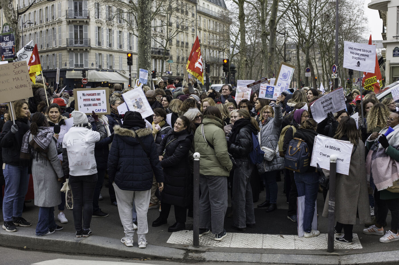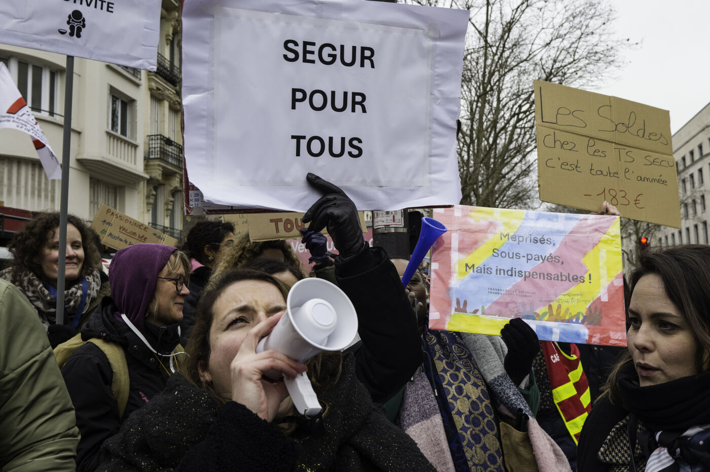 Social workers on strike are demanding the €183 Ségur bonus and recognition of their three-year post-secondary diploma at level 6. They are gathering in front of the Ministry of Health to make their voices heard.