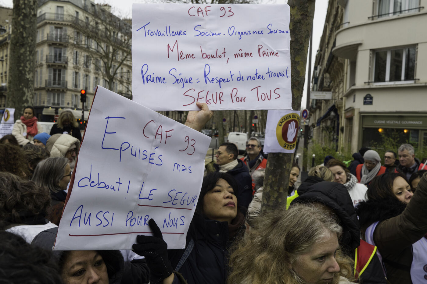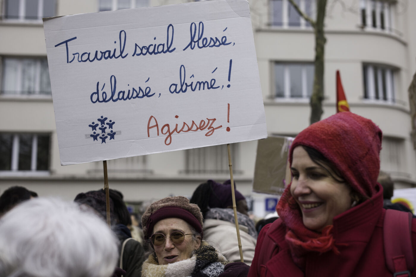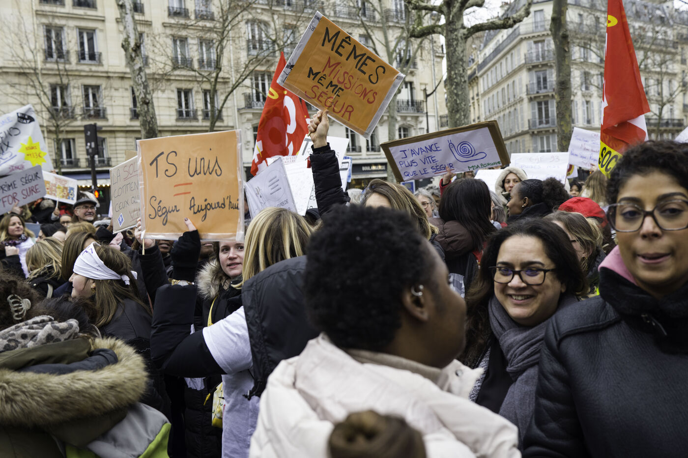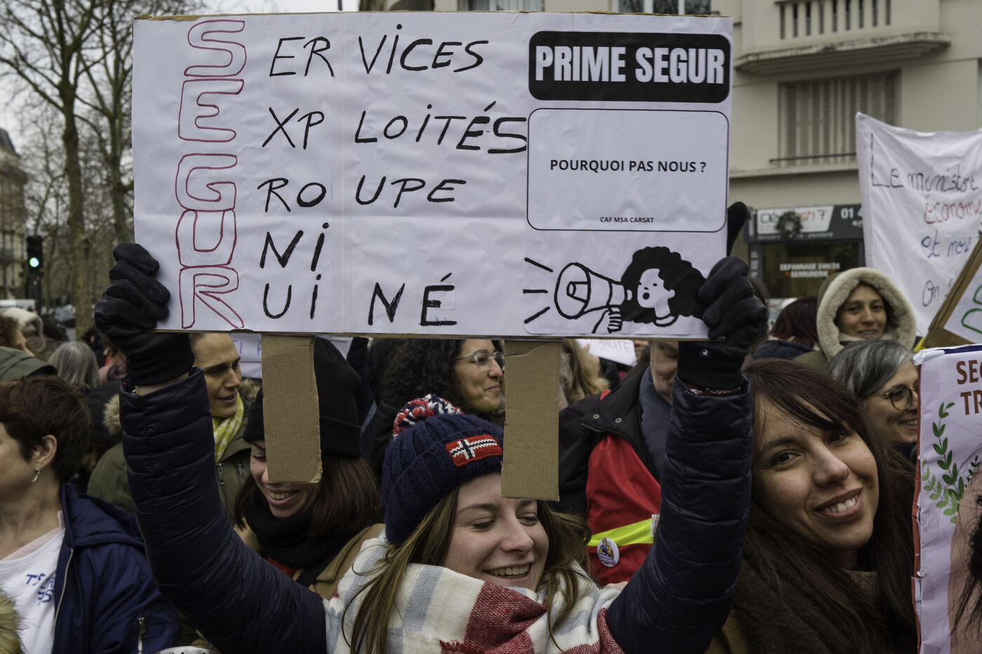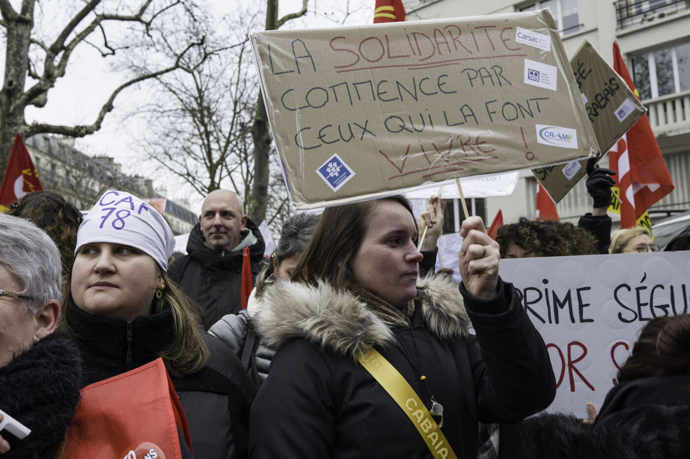 Social workers on strike are demanding the €183 Ségur bonus and recognition of their three-year post-secondary diploma at level 6. They are gathering in front of the Ministry of Health to make their voices heard.