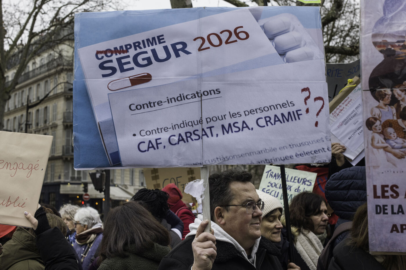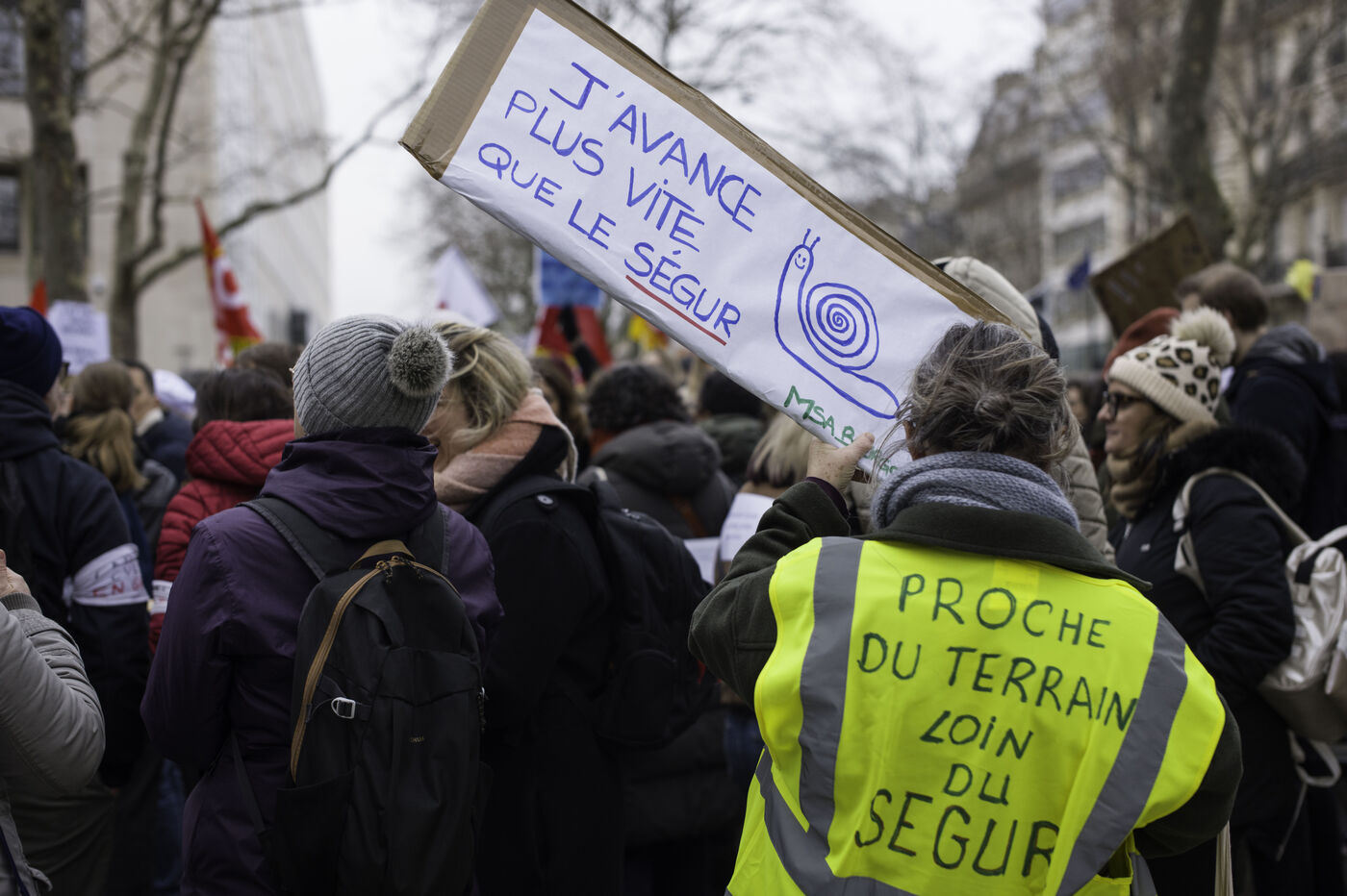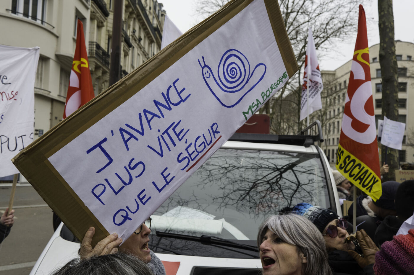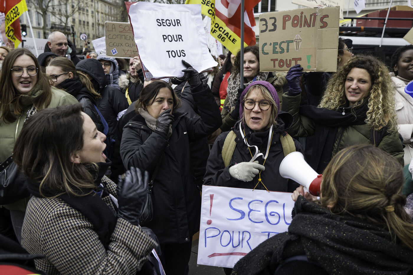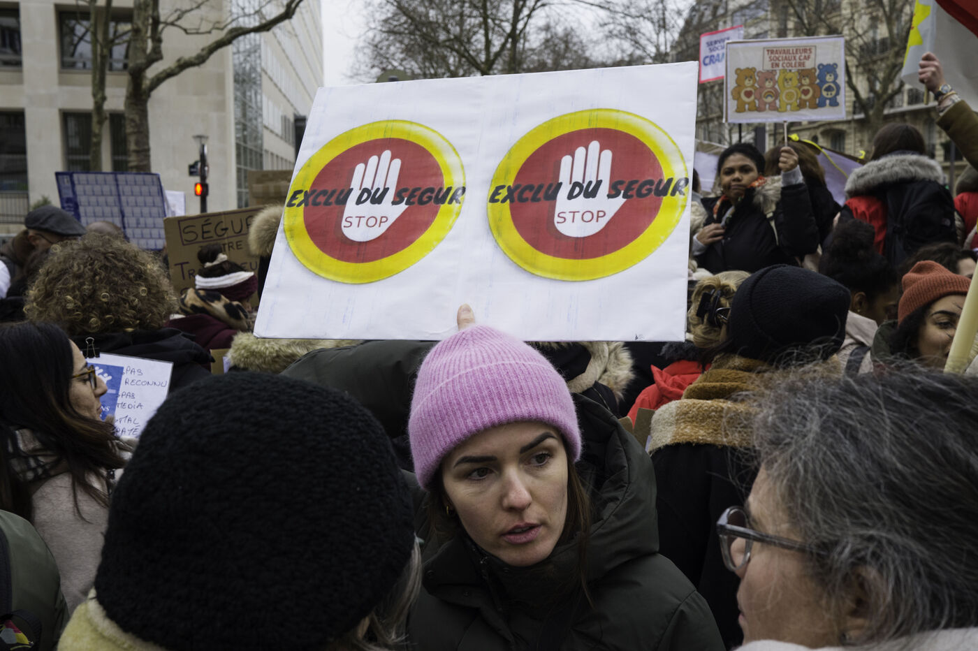 Social workers on strike are demanding the €183 Ségur bonus and recognition of their three-year post-secondary diploma at level 6. They are gathering in front of the Ministry of Health to make their voices heard.