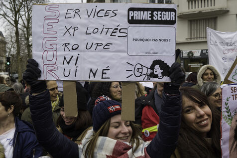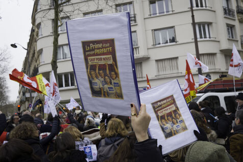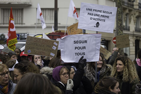 Les travailleurs sociaux, en grève, réclament la prime Ségur de 183€ et la reconnaissance de leur diplôme, bac +3, au niveau 6 .Ils se rassemblent devant le Ministère de la santé pour se faire entendre.