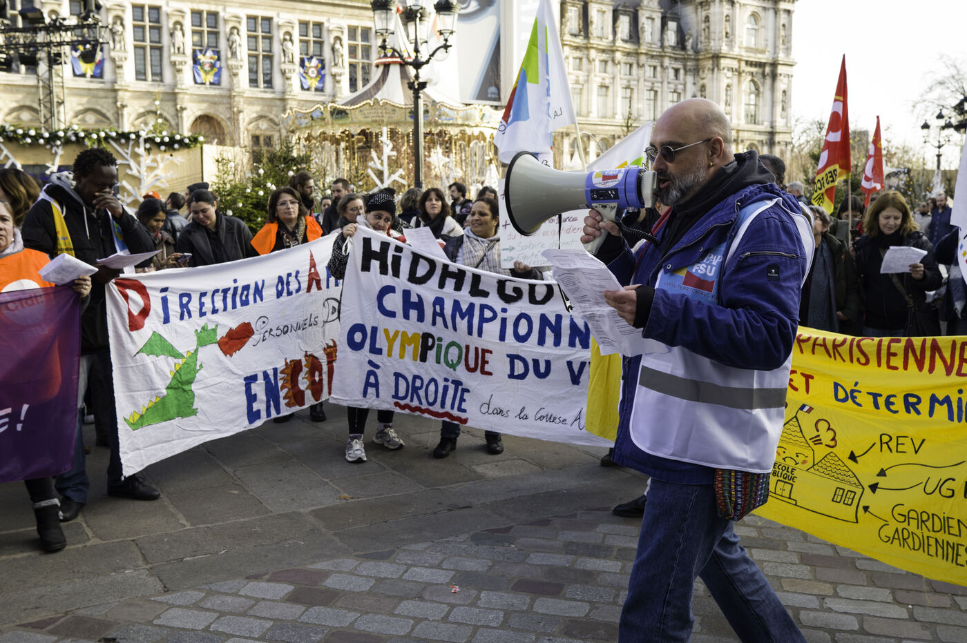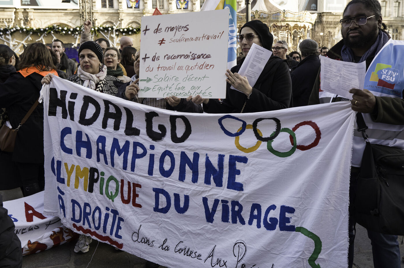 Alors que le Conseil de Paris commence à examiner le budget 2026, des parents d’élèves, et le personnels d’animations sont venus interpeller les élus sur la place de l’Hotel de Ville.